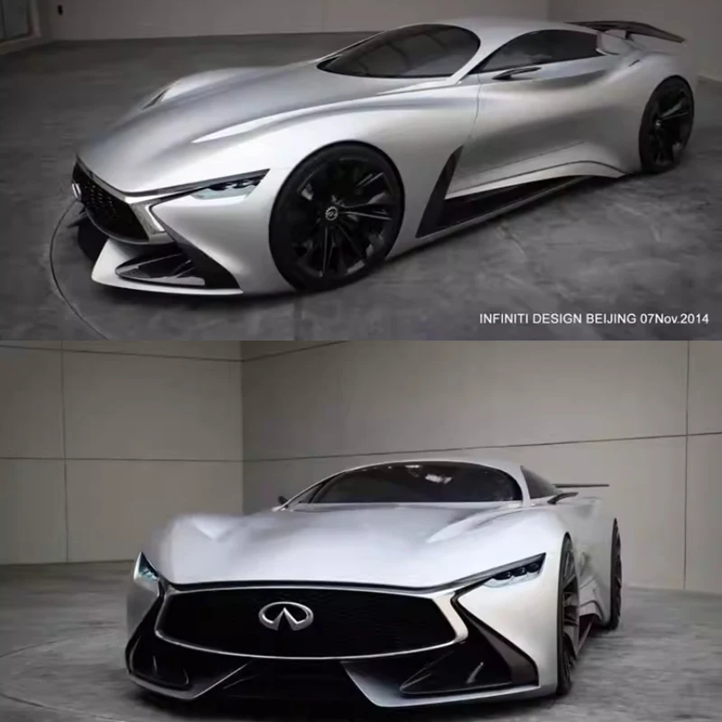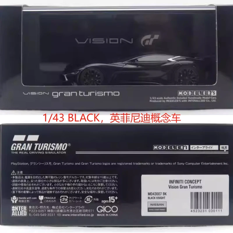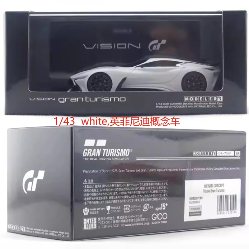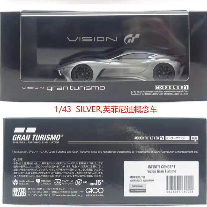 Discover the exquisite craftsmanship of the MODELER’S 1:43 scale resin car model, measuring approximately 15 cm, depicting the sleek Vision Gran Turismo concept car. Crafted from durable metal, this meticulously detailed diecast replica features a futuristic aerodynamic design with smooth curves, sharp angular lines, and a metallic silver finish that radiates modern sophistication. The model showcases sculpted front lines, integrated headlights, multi-spoke racing wheels in black with silver accents, and a prominent rear wing spoiler, all reflecting high-performance aesthetics. Perfect for enthusiasts and collectors aged 18+, this premium piece offers a striking display of innovative automotive style.