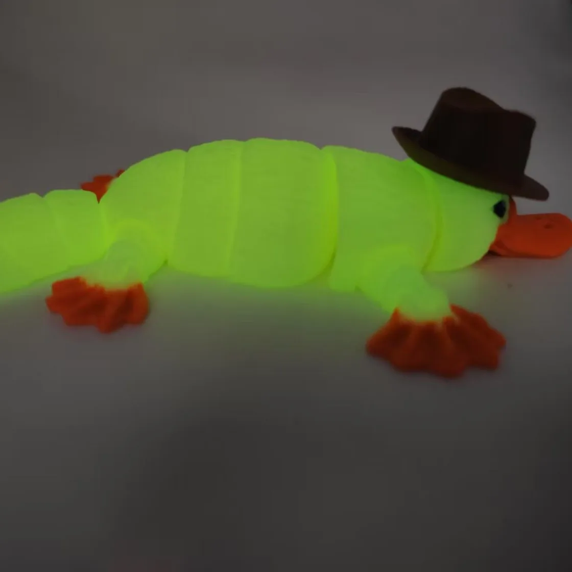 - Each plush duck is accessorized with a textured, brown fedora-style hat with a wide brim and rounded crown, adding a touch of classic style and personality.