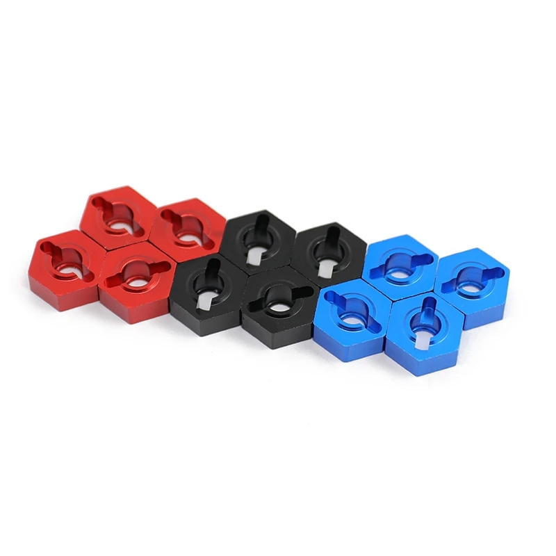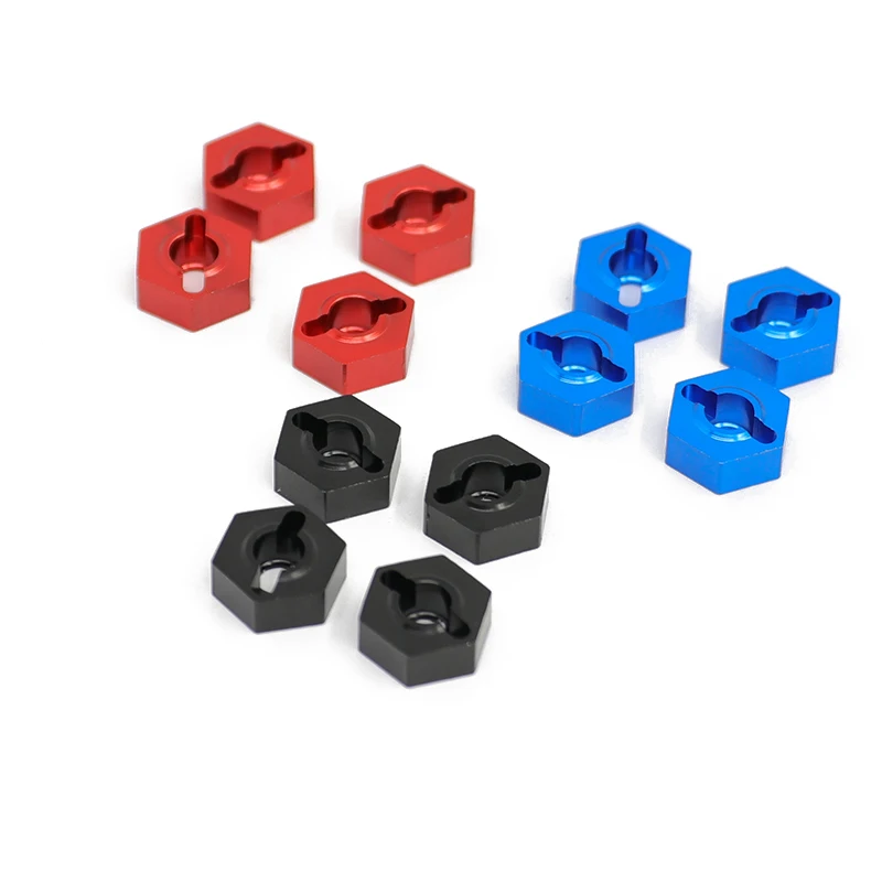 Enhance your 1/10 scale RC car’s performance and appearance with this set of four high-quality 14mm metal wheel hex hub adapters, compatible with models like ARRMA 3S, SENTON, VORTEKS, Typhon, Big Rock, and Granite. Crafted from durable metal with a sleek, polished finish, these adapters feature a precise hexagonal design with a cut-out section for easy attachment and a recessed internal area to secure the wheel hub with the included pins. Available in black, blue, and red, they offer customization and a professional look while ensuring strength and durability for ages 14 and above.
