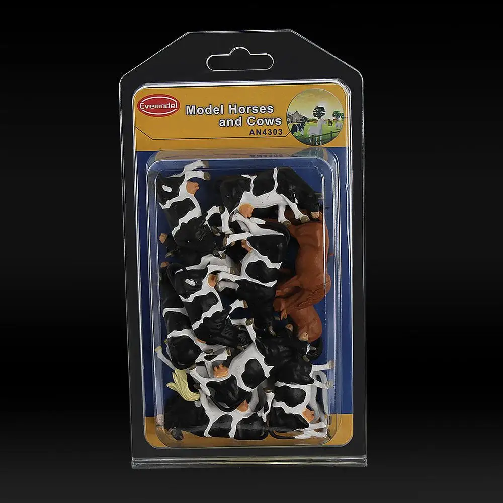 Enhance your model railway scene with this set of 15 detailed PVC animal figures, including horses and cows, scaled at 1:43 for O scale layouts. The collection features sizes ranging from approximately 2.81 cm (1.11″) to 5.15 cm (2.03″) and showcases realistic details with black, white, and brown finishes. Made of durable plastic, these unisex figures are perfect for adding lifelike charm to dioramas and train scenery, creating a truly immersive miniature environment for adult collectors and enthusiasts.