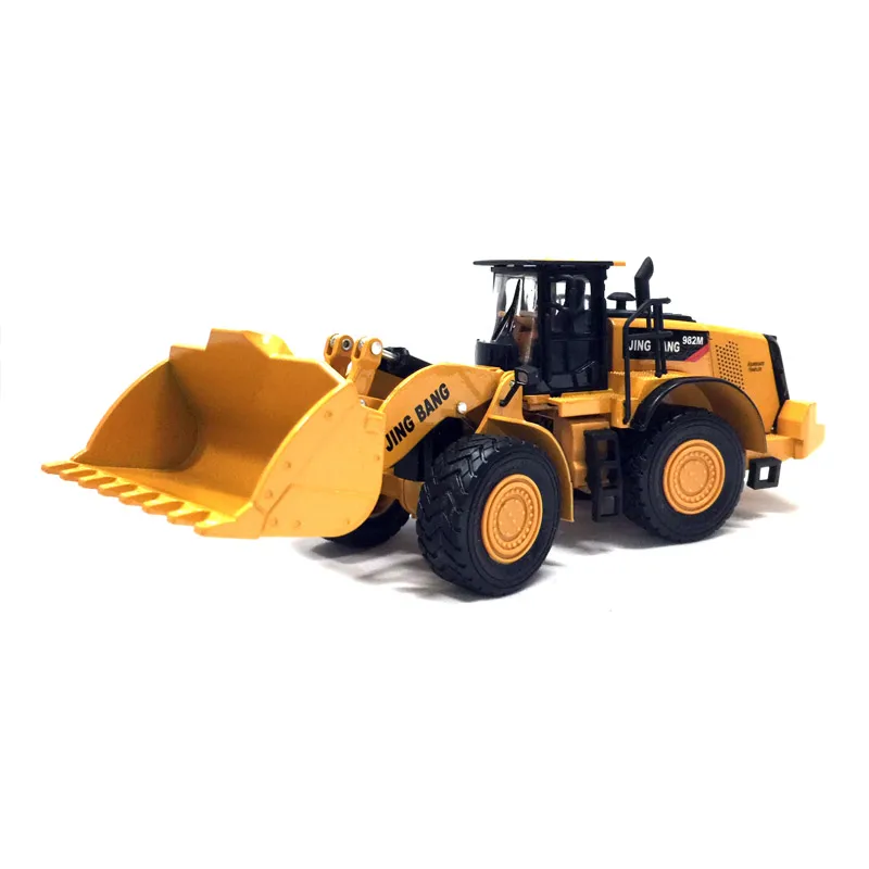 - Articulated front loader with a sliding mechanism for realistic operation.