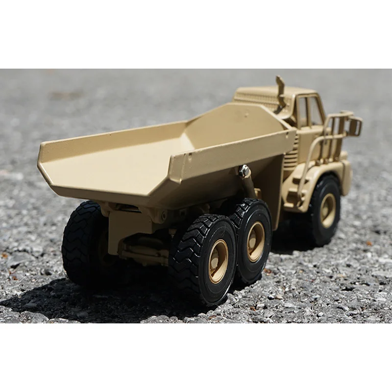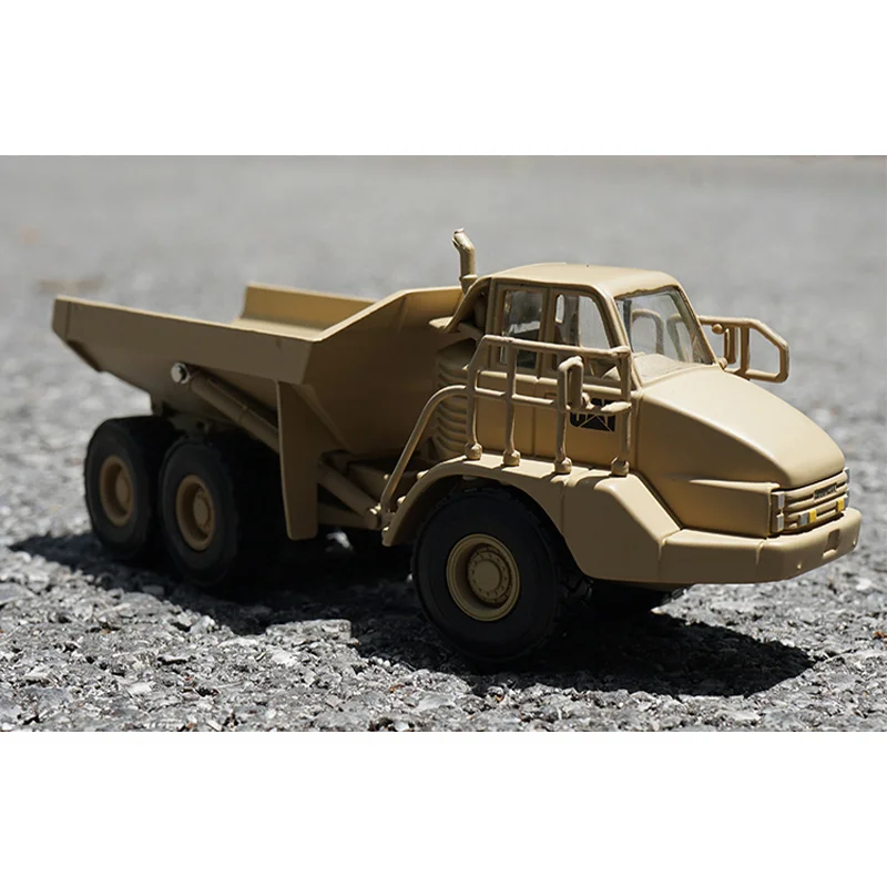 Experience the rugged charm of this detailed miniature replica, perfect for collectors and enthusiasts alike. Crafted from durable alloy and ABS plastic, this model captures every mechanical detail of the original industrial vehicle, from its boxy cab with angular contours to the high-sided cargo bed. The uniform beige finish highlights its military-inspired aesthetic. Functional elements such as movable wheels, a tail hook, push plates, and a rear compartment that tilts up bring realism to your display. The detailed undercarriage features multiple axles and textured rims, supported by black rubber tires. This model not only provides visual appeal but also showcases craftsmanship and mechanical authenticity, making it a striking addition to any collection or display shelf.