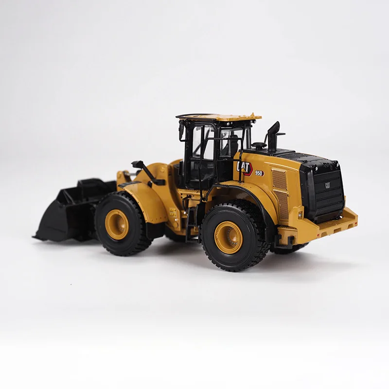 This 1:50 scale diecast model of a CAT 950 wheel loader measures approximately 17.1 cm in length, 5.9 cm in width, and 7.1 cm in height. Crafted from alloy and plastic, it features a realistic metallic finish with construction yellow and black accents, rugged rubber tires with deep treads, and articulated loader arms with hydraulic pistons for added realism. Suitable for collectors 14 and older, this durable display piece captures the industrial aesthetic of heavy construction machinery, making it a perfect addition to any collection of construction vehicle replicas. An original, unopened packaging ensures its pristine condition for display or collection.