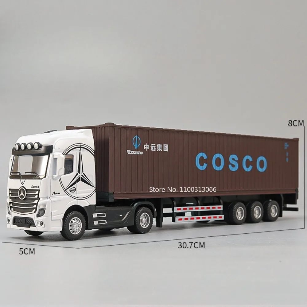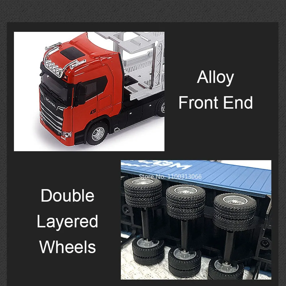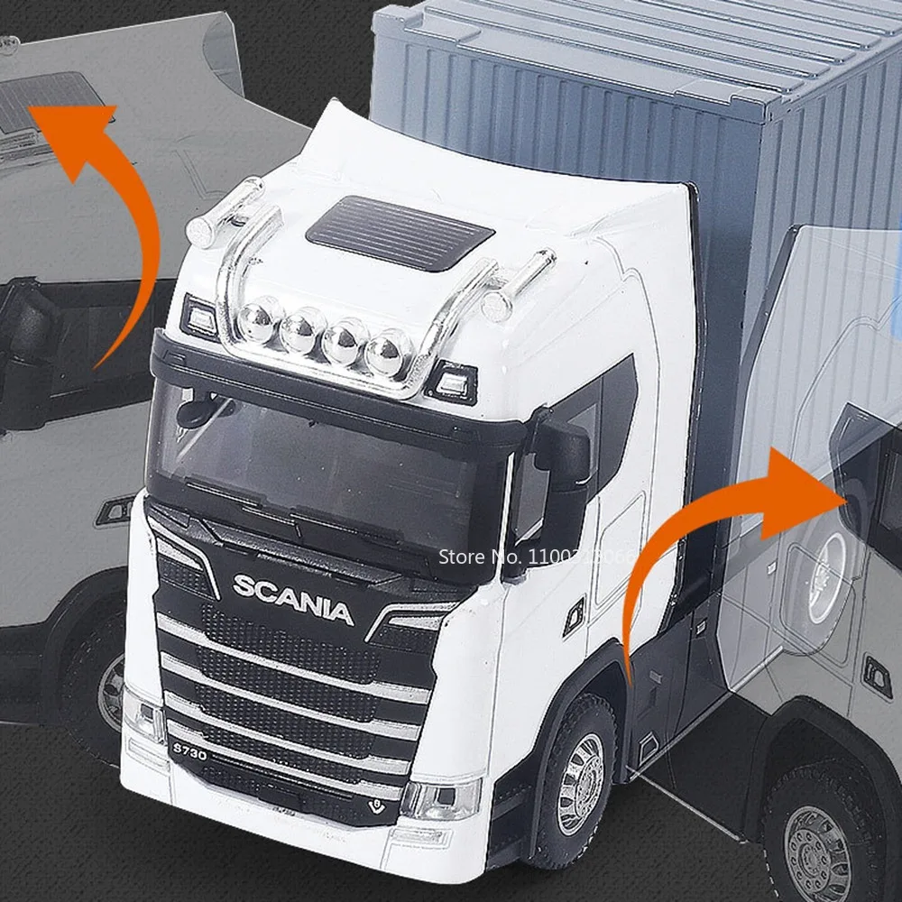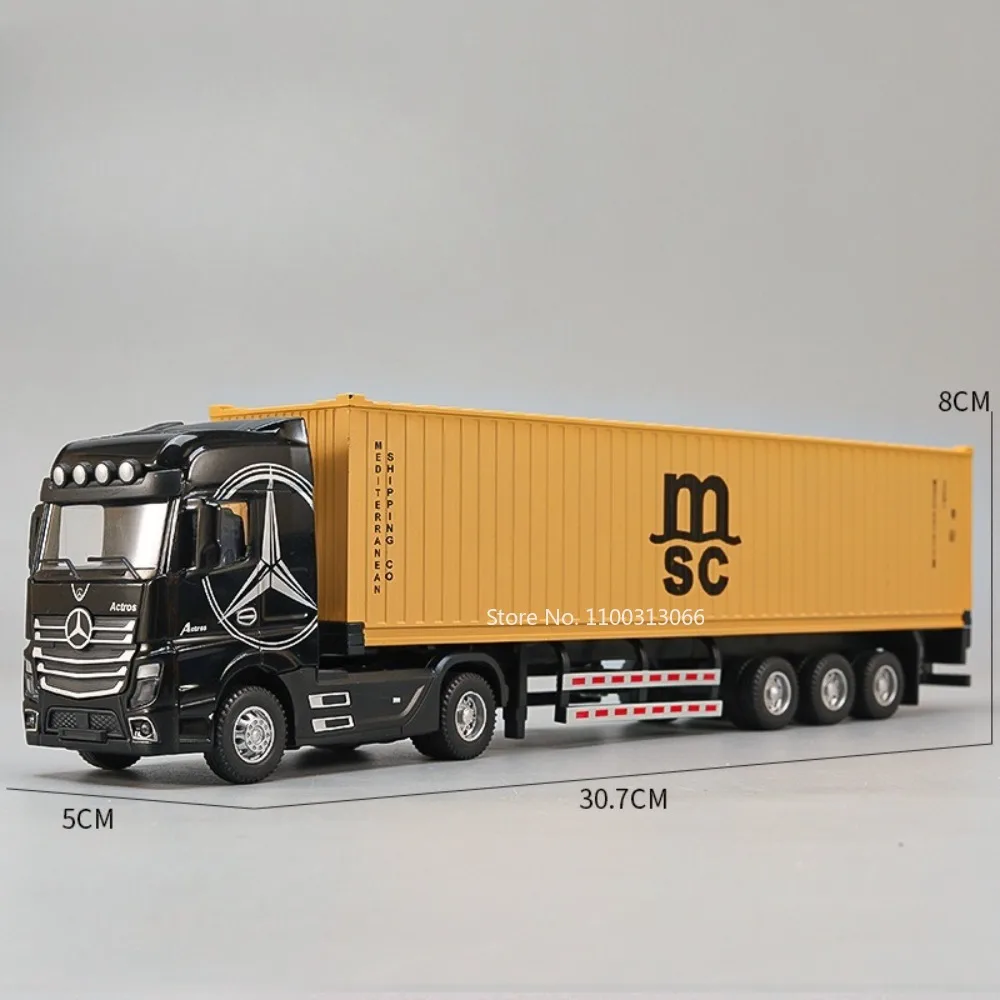 This 1:50 scale diecast truck model features a sleek alloy front end and body with durable ABS plastic components, complemented by realistic rubber tires. It includes light and sound functions with batteries for immediate use, and the carriage doors are openable for added realism. The model is equipped with a pull-back mechanism for the front wheels, making it highly interactive and fun. Available in multiple vibrant color combinations such as black and yellow, red and yellow, blue and gray, white and gray, and brown and white, this detailed miniature is perfect for collectors and enthusiasts aged 14 and above.
