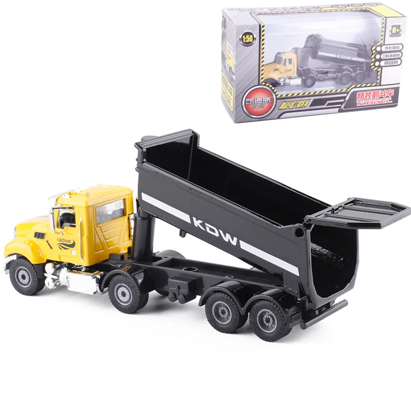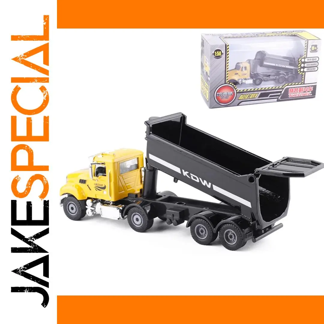 Immerse yourself in the industrial world with this highly detailed diecast dump truck model. Measuring approximately 20 centimeters long, 5.5 centimeters wide, and 6.5 centimeters tall, it boasts a striking yellow cab with a sleek, streamlined design. The black cargo bed features a bold white stripe and “KDW” markings, adding a modern touch. Crafted from zinc alloy, plastic, and rubber, this model offers exceptional durability and realistic detailing. The textured rubber tires with detailed rims and visible axles evoke authentic industrial machinery. Its compact size makes it ideal as a collectible or a high-quality gift for enthusiasts. This non-electrical, adult-oriented replica emphasizes craftsmanship and aesthetic appeal, making it a standout piece in any collection.