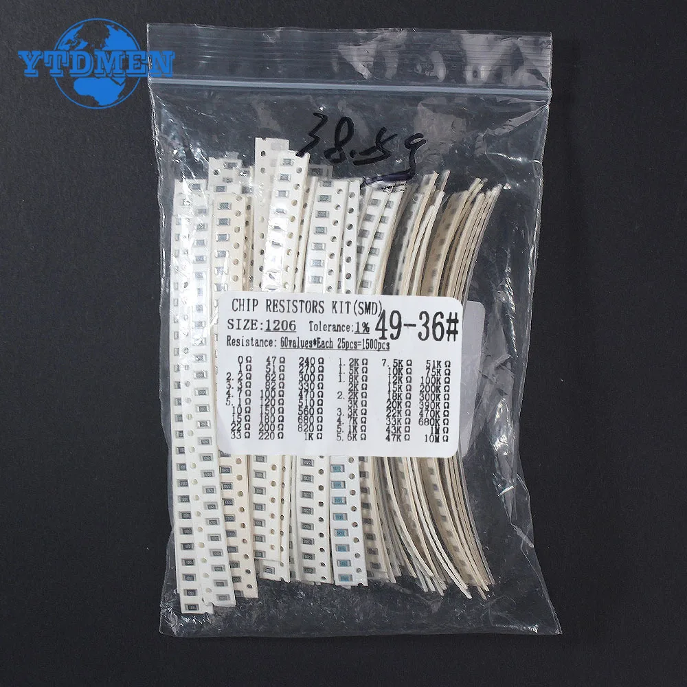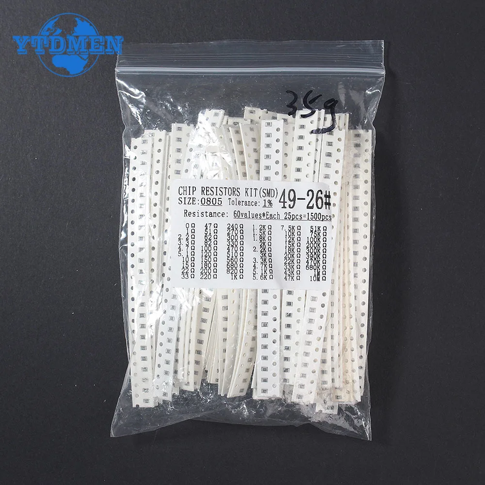 - Includes 1,500 surface-mount film resistors with 60 resistance values, perfect for diverse electronic applications and precise circuit tuning, providing an extensive range from 0R to 10M ohms.