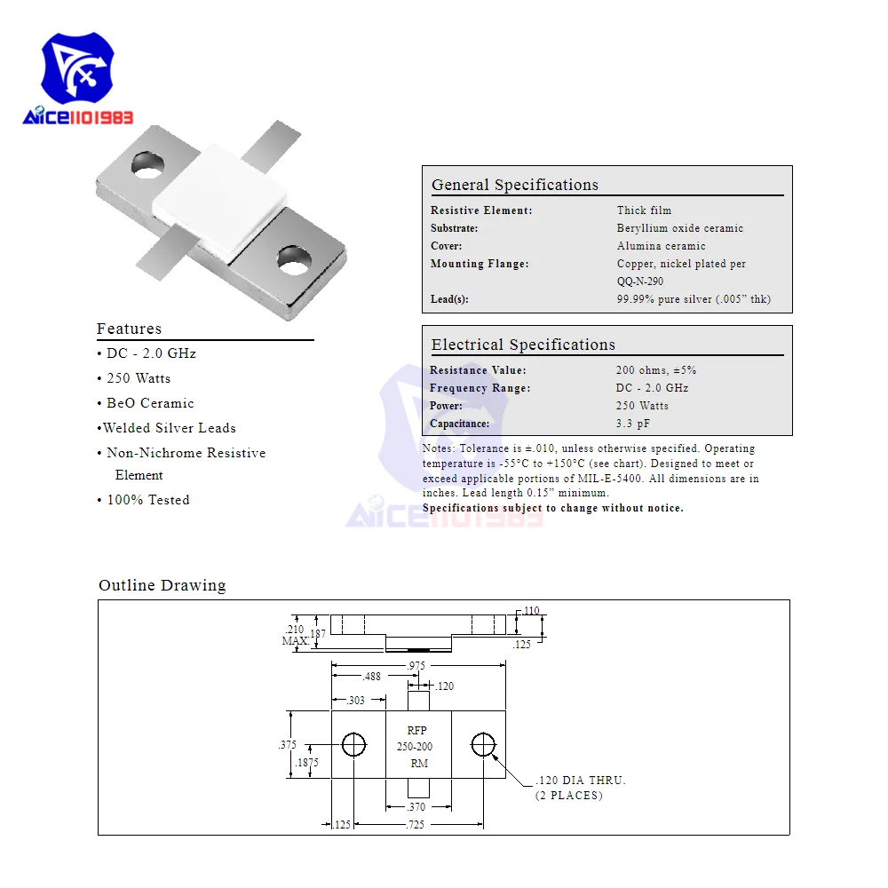 Invest in this innovative RF termination resistor today and elevate your high-frequency system performance. Its excellent thermal handling, precise specifications, and sleek design make it an essential part of your electronic toolkit. Whether you're terminating circulators, managing power in microwave circuits, or working on advanced communication systems, this component offers peace of mind and robust performance. Place your order now to experience the perfect blend of technical excellence and dependability, ensuring your projects run smoothly and efficiently.