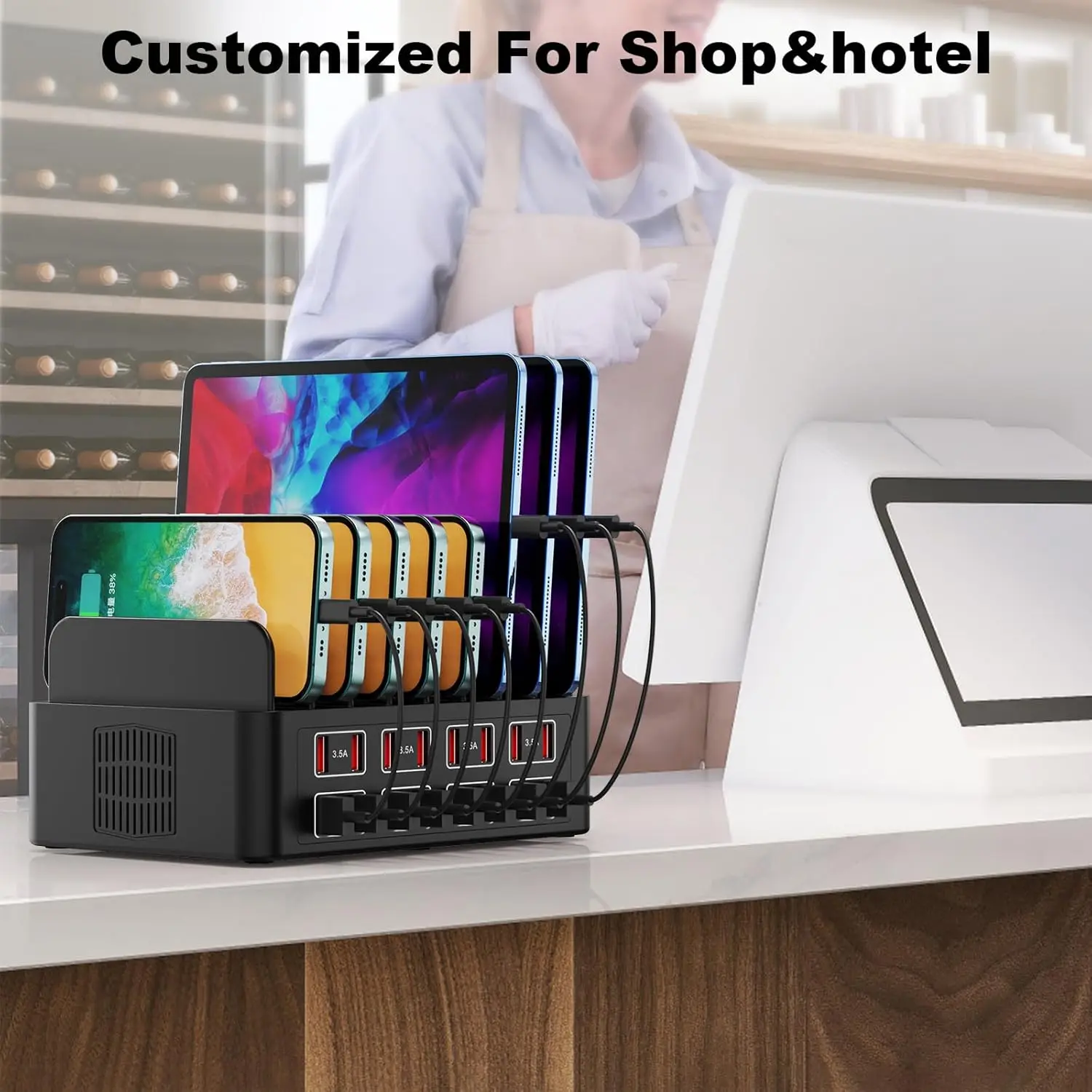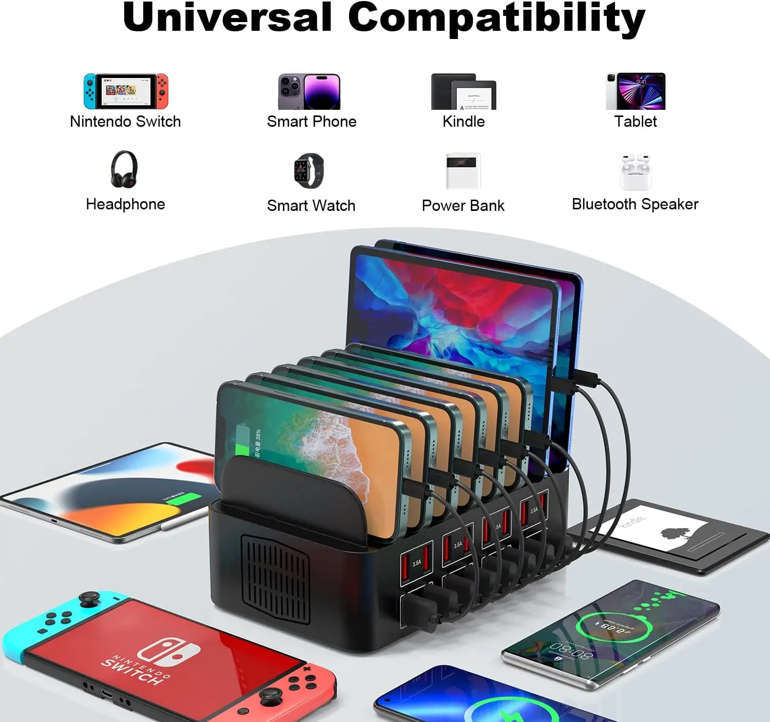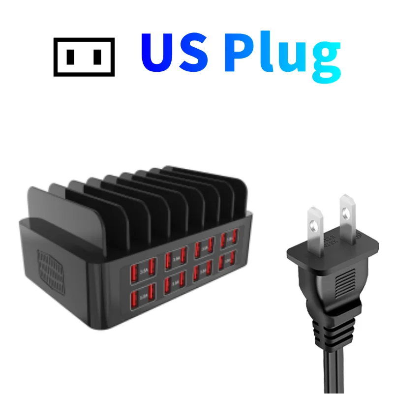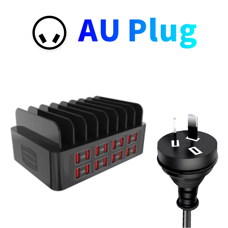 Introducing the 150W Universal Multi USB Charger, featuring 16 USB ports for fast charging at 3.5A, perfect for keeping your devices powered up. This sleek black charger is compatible with a wide range of devices, including iPads, iPhones (14, 13), Samsung Galaxy S22, and Xiaomi tablets. The innovative design includes a desk holder for organized charging and supports multiple plug types (EU, UK, AU, US) for international use. With its efficient heat dissipation and practical lazy bracket, you can easily visualize a well-organized charging station that enhances your workspace or home setup.