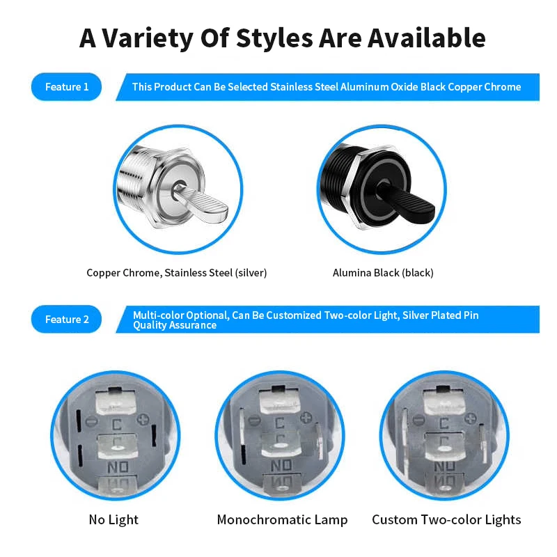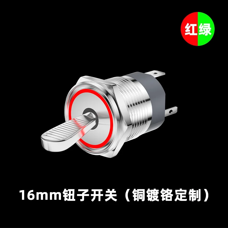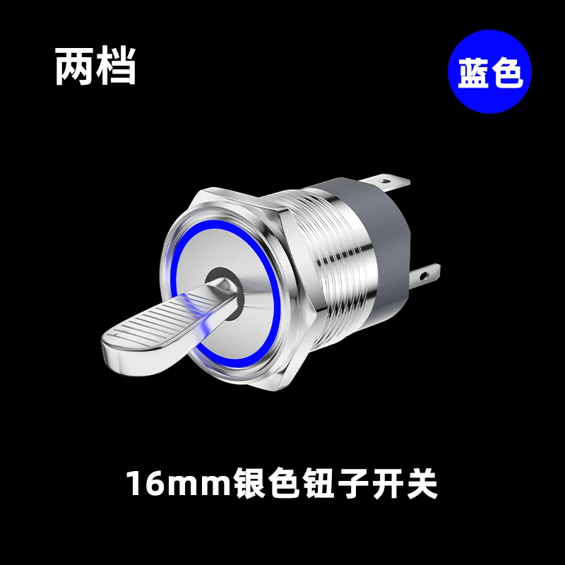Step into a world of reliable electronic operation with this advanced 15A, 16mm self-locking rocker toggle switch. Crafted from durable, shiny metallic materials such as stainless steel or chrome, it boasts a polished, reflective surface that exudes high quality. Its textured design features fine horizontal grooves, giving it an industrial, modern aesthetic. The prominent, grooved handle extends approximately 16mm for easy gripping and effortless operation. Integrated with multi-color LED indicators—red, white, yellow, and blue—it provides vivid visual status cues ensuring clear, instant recognition of the toggle position. Perfectly suited for low-voltage applications, this switch combines style, functionality, and durability, making it an ideal component for any electronic device requiring a sleek, reliable ON-OFF control.