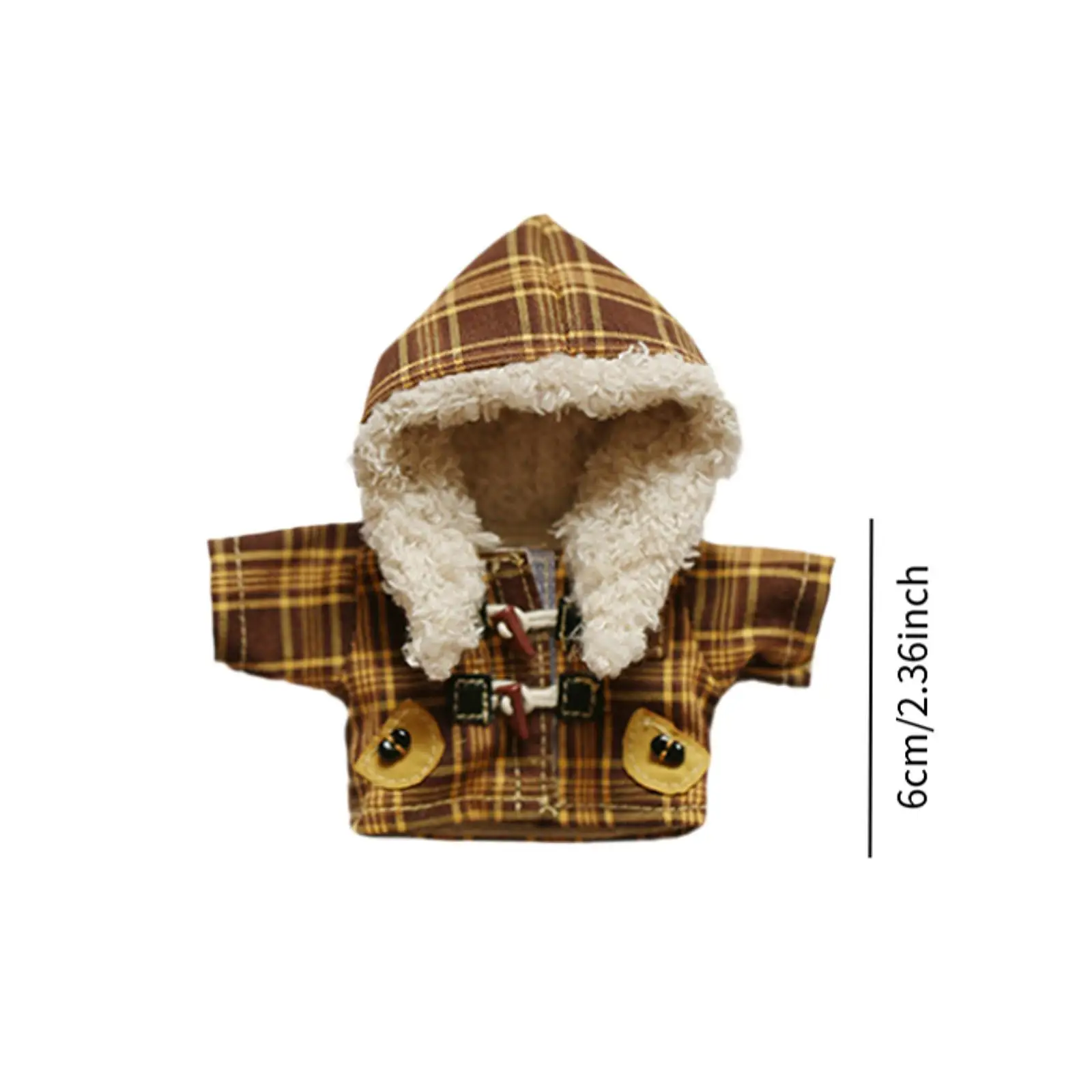 Enhance your collection with this stylish 15cm doll coat crafted from durable cotton fabric, measuring approximately 6cm in length. Featuring a vibrant, colorful tartan pattern in warm shades of brown, yellow, and orange, it exudes cozy charm. The coat includes a plush off-white faux-fur-lined hood and decorative buttons with shiny black centers for an extra touch of allure. Carefully sewn for easy dressing and undressing, this adorable accessory boosts your doll’s attractiveness and sparks imaginative play. Designed for children aged 14 and above, it offers a perfect way to add fashionable flair to your miniature doll wardrobe.