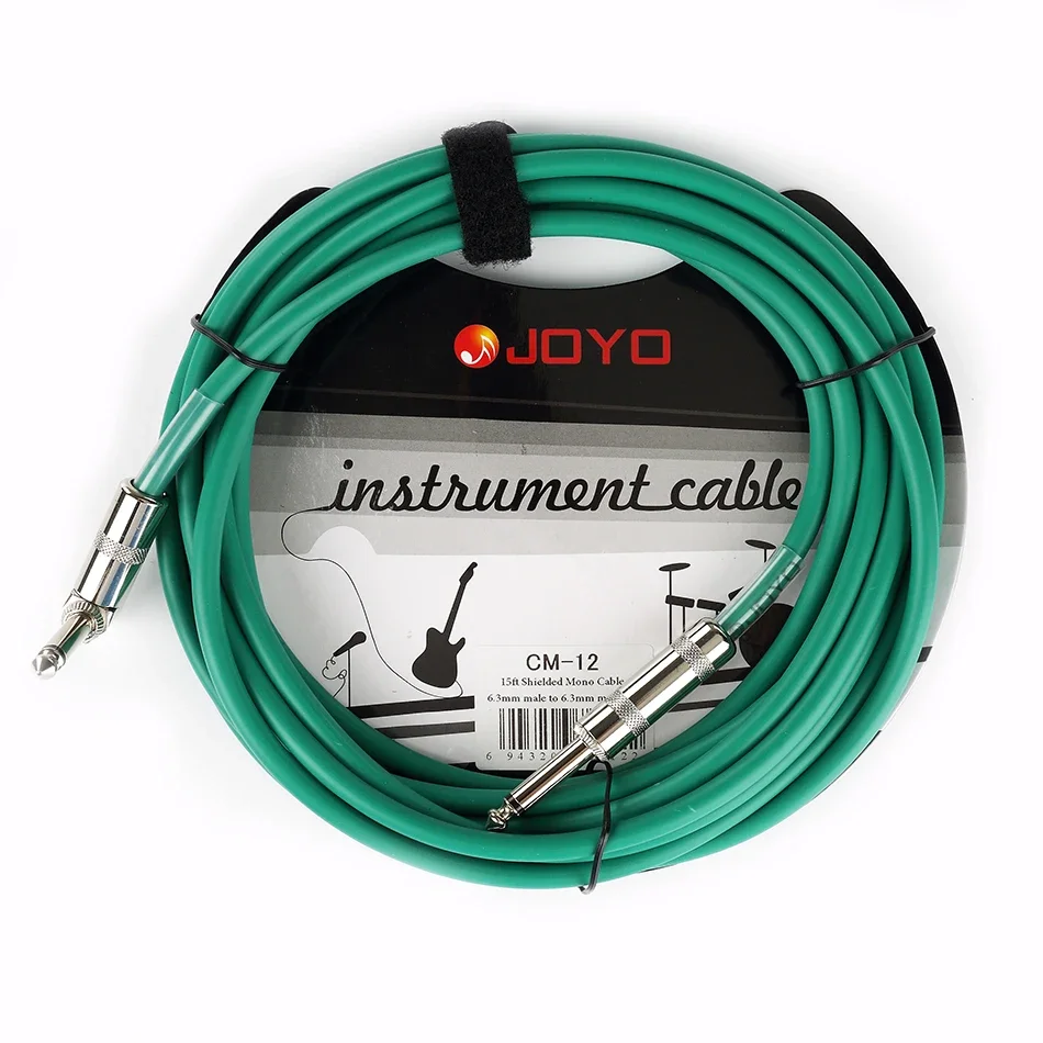 Enhance your musical setup with the JOYO CM-12 15FT/4.5m shielded mono instrument cable, featuring durable PVC insulation and pure copper conductors for optimal signal clarity and interference protection. Equipped with 6.3mm male to 6.3mm male angled metal connectors, this versatile cable is perfect for guitars, basses, keyboards, and other audio instruments. Available in six vibrant colors—black, red, yellow, blue, green, and purple—it combines reliability with a stylish appearance. At 15 feet long and weighing approximately 195 grams, it offers flexible placement and robust performance, making it an essential accessory for professional musicians and enthusiasts alike.