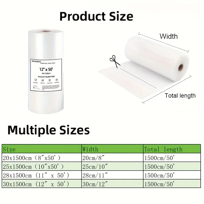 Transform your kitchen storage routine with this high-quality, versatile vacuum bag roll. Perfect for reducing waste, blocking odors, and keeping food fresh longer, it’s a practical addition to your household essentials. Imagine effortlessly organizing your refrigerator, freezer, or pantry and having all your items clearly visible at a glance. With its durable, reusable design and multiple widths, this roll adapts perfectly to your storage needs. Invest in this reliable storage solution today and enjoy the convenience, cleanliness, and peace of mind that come with perfectly preserved and organized food every day.