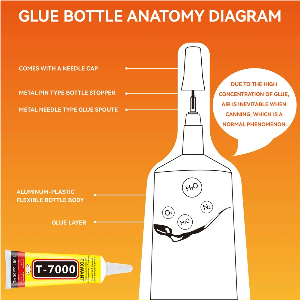 Experience precise bonding with this this Fixwant T-7000 contact adhesive, designed specifically for professional cellphone and tablet repairs. Its vibrant yellow tube with a white cap and pointed applicator ensures accuracy and ease of use. The bold black label with white lettering and red accents adds a modern touch, reflecting the premium quality of the product. Formulated with 30-35% solid content, it provides a strong, durable bond to various materials, resistant to water and environmental factors. Thanks to its quick curing time—just 3-6 minutes for initial set and 24-48 hours to reach full hardness—you'll complete repairs efficiently. The vacuum-sealed precision tip prevents clogging, ensuring a consistent application every time. The sleek design embodies technical sophistication, making it ideal for professional or enthusiast use.