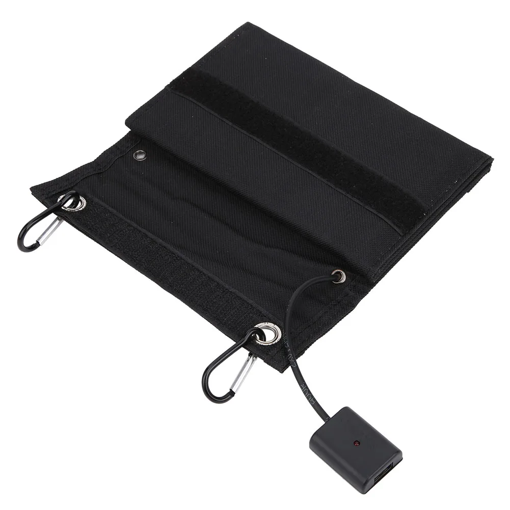 Experience the freedom of reliable mobile power with this sleek, black, foldable solar panel. Designed for outdoor enthusiasts and adventurers, it offers lightweight portability and rugged durability. Made from high-quality monocrystalline silicon, PET, and fabric, it combines cutting-edge technology with practical design. Compact and flexible, it folds easily for transport and unfolds to harness the sun’s energy efficiently. With a 20% conversion rate, 5V maximum power voltage, and 2A output, it powers various devices like cameras, laptops, or vehicle batteries. Reinforced metal grommets and included carabiners ensure stability and secure hanging during outdoor activities. Waterproof and dustproof with an IP65 rating, this solar panel is built to withstand tough environments, combining high performance with durability for your outdoor adventures.