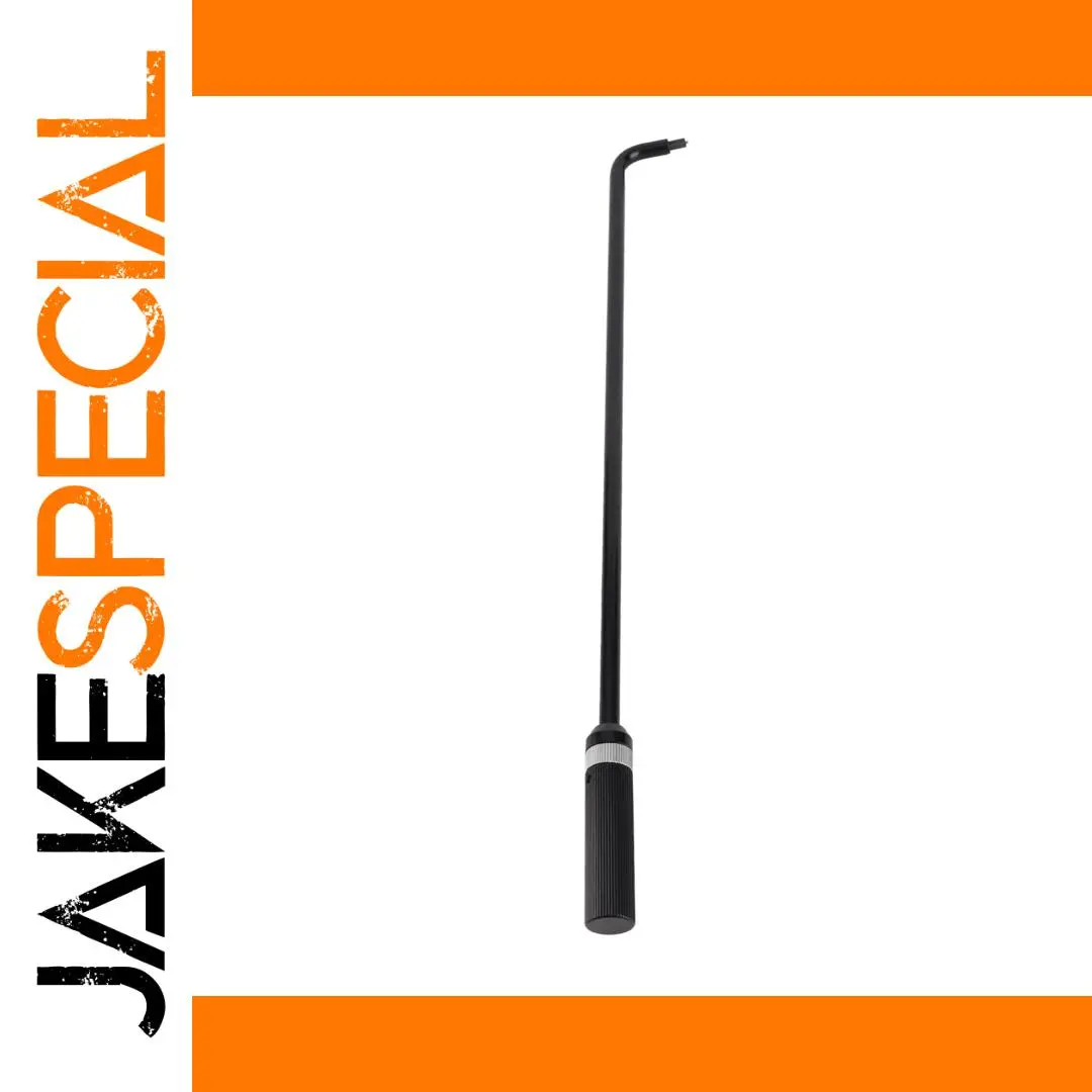 This 16.34-inch carburetor pilot screw adjusting tool features a durable metal construction with a 110° angled head extending up to 1 inch, designed for easy access to air and fuel mixture screws on multi-cylinder motorcycles, ATV, UTV, and snowmobiles. It includes a rotatable straight slot blade tip for precise adjustment in tight spaces. Its sleek, industrial aesthetic combines a polished finish with a textured, black handle for a secure grip. The versatile, universal design ensures compatibility across various models, making it an essential tool for maintenance and fine-tuning of carburetors, providing reliable performance and ease during use.