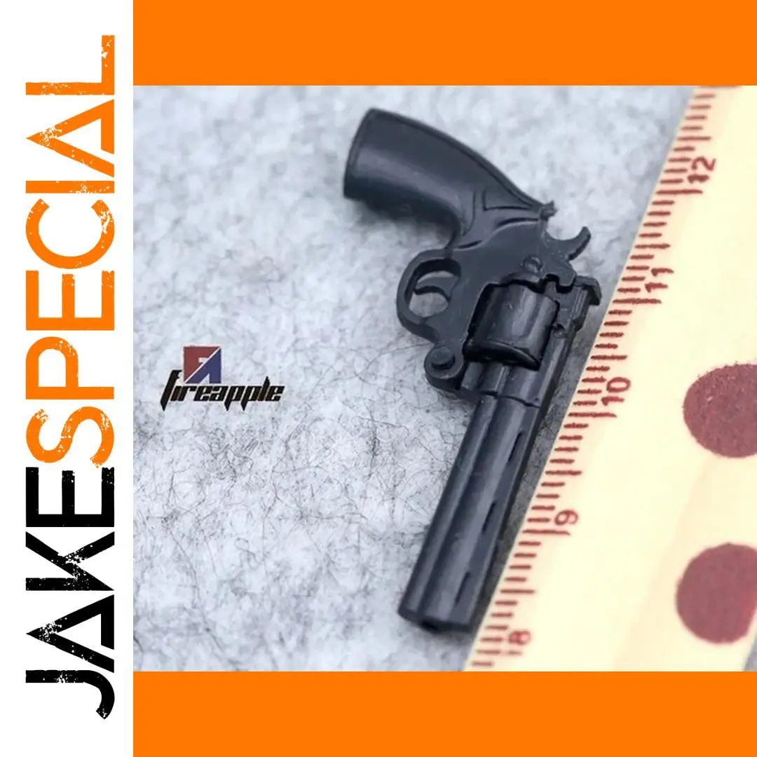 Experience the rugged charm of this this 1:6 scale black plastic revolver, designed specifically for 12-inch action figures like soldiers or military characters. Its minimalist, sturdy design captures the classic revolver shape with a rounded cylinder, curved trigger guard, and smooth barrel. The matte black finish reduces glare, adding to its realistic yet toy-like aesthetic. The surface offers a rough, unpolished texture, emphasizing its handmade, rugged appeal. Although details are simplified and exaggerated, this model effectively enhances any military-themed figure, providing an authentic accessory. Perfect for collectors or enthusiasts, this toy revolver is easy to integrate into your dioramas or action displays for an immersive experience.