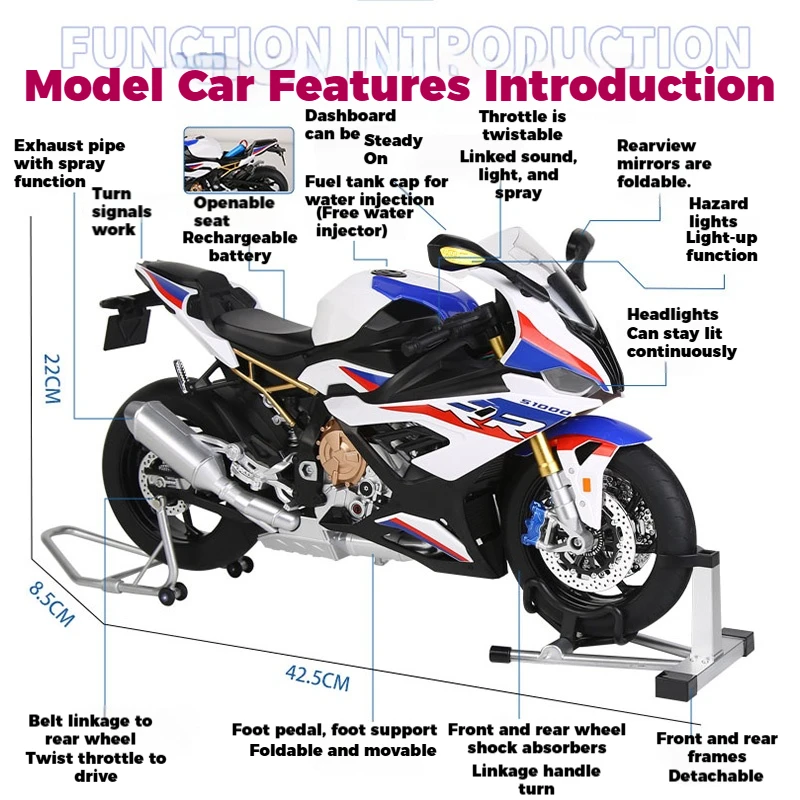 Transform your space with this stunning, highly detailed BMW S1000RR replica that reflects the thrill and precision of the original motorcycle. Perfect for enthusiasts or collectors, it offers excellent craftsmanship and an authentic look. This model not only enhances your decor but also symbolizes speed and style, ideal for showcasing your passion for motorcycles. Simply imagine having this captivating piece in your home or office—ready to ignite conversations and admiration. Order today and enjoy owning a realistic, stylish, and durable collectible that elevates your decorative collection to a new level of sophistication.