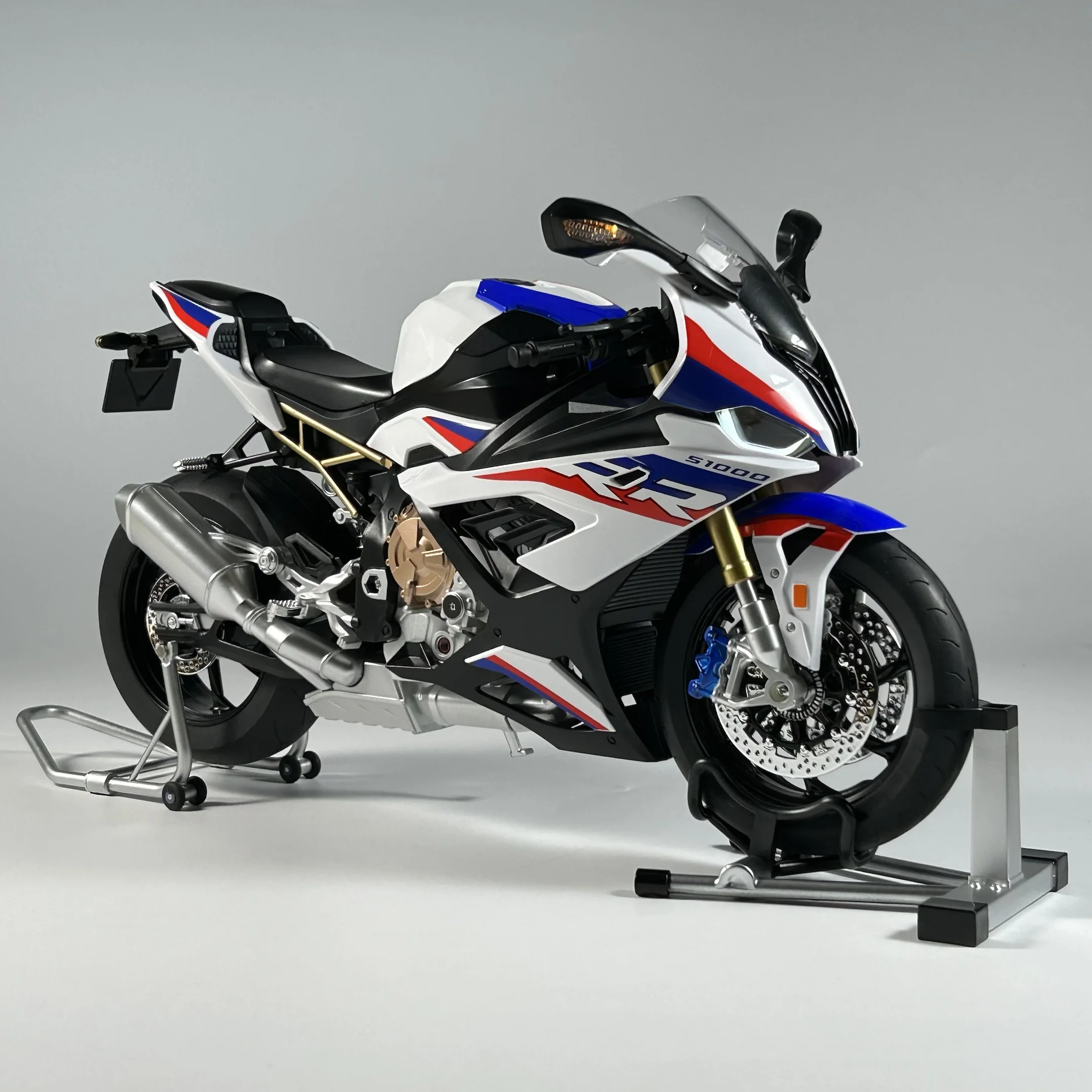 - The aerodynamic fairing features clean panel lines and subtle vents, showcasing the aerodynamic design and meticulous craftsmanship that faithfully replicates the original BMW S1000RR.