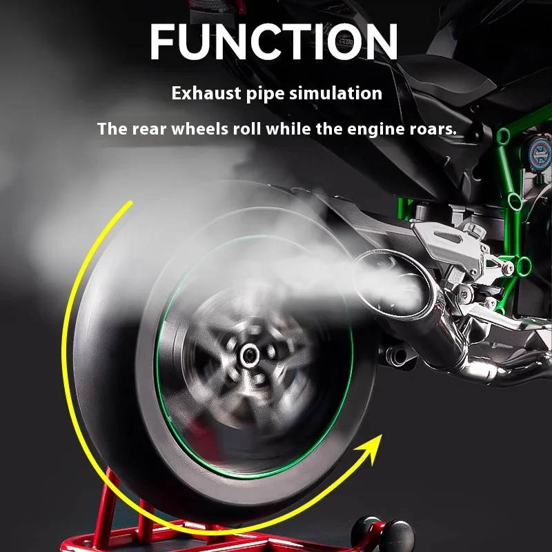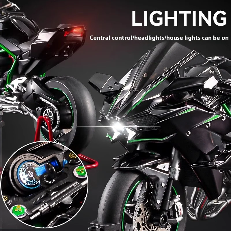 - Engineered at a precise 1:6 scale, representing the detailed design of the Kawasaki H2R, including aerodynamic fairings, angular bodywork, and authentic engine components for a true-to-life look.