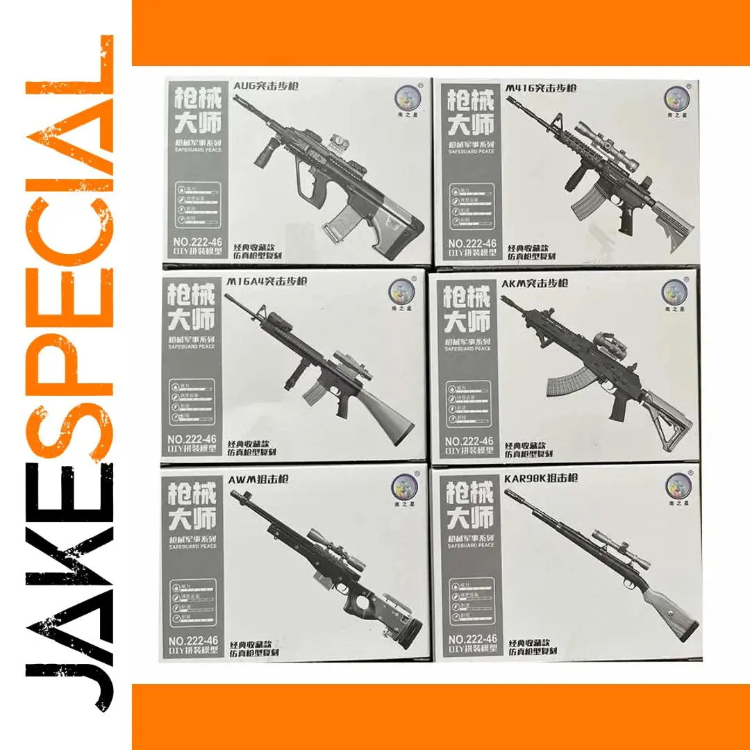 Experience the thrill of assembling a realistic collection of tactical rifles with this detailed 1:6 scale assembly gun model set. Crafted from high-quality ABS plastic, these models showcase intricate details, authentic shapes, and sleek finishes that mimic real firearms in a miniature form. Available in diverse models including AUG, M16A4, AKM, M416, 98K, and AWM, each piece is designed to enhance your display, cosplay, or collection. The vibrant color options highlight unique design elements, making each model stand out. Whether you're a seasoned collector or an enthusiast, these models offer a perfect balance of realism and craftsmanship to enrich your collection and display spaces with a modern military aesthetic.