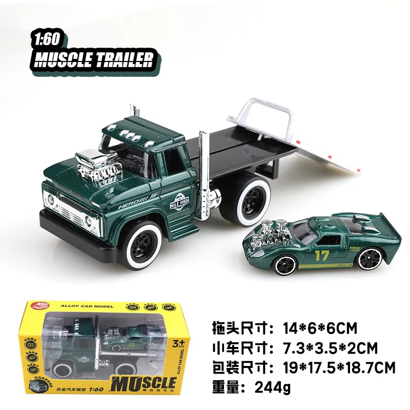 Experience the impressive craftsmanship of this highly detailed diecast trailer, designed to capture the essence of classic American muscle vehicles. Each model boasts vibrant, eye-catching colors such as metallic gray, forest green, vivid blue, bright yellow, and shimmering gold. The alloy body is meticulously crafted to simulate real metal, complemented by rubber tires for an authentic look. Features include realistic engine and load details, along with sound and light functions that enhance display appeal. These finished models are perfect for collectors and enthusiasts aged 14 and above. Whether displayed alone or as part of a larger scene, this trailer offers durable quality, striking aesthetics, and an engaging presentation that invites you to imagine owning and showcasing these iconic vehicles.