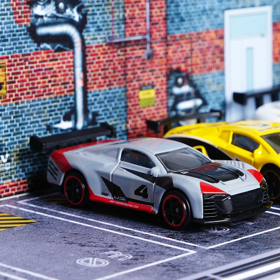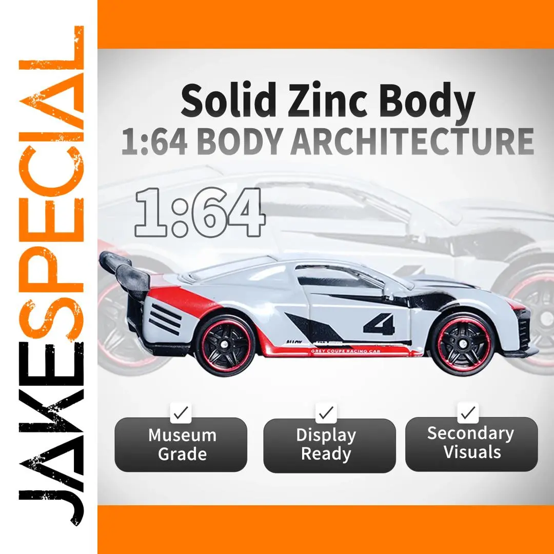 Experience the thrill of high-performance racing with this 1:64 scale alloy model car, measuring approximately 64mm in length. Crafted from high-quality zinc alloy, it features a sleek gray body accented with bold red details on the rear wing, front bumper, side skirts, and wheel rims, showcasing a dynamic, sports-inspired design. The detailed contours, sculpted surfaces, black-tinted windows, and lightweight, compact build make it perfect for easy handling and display. Suitable for ages 4 and up, this non-electric, battery-free model is ideal for collecting, decorating, or imaginative play, offering a realistic and eye-catching addition for car enthusiasts and collectors alike.