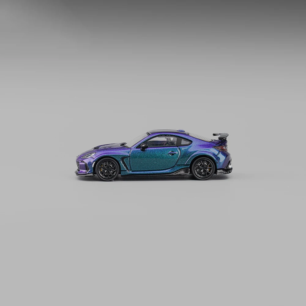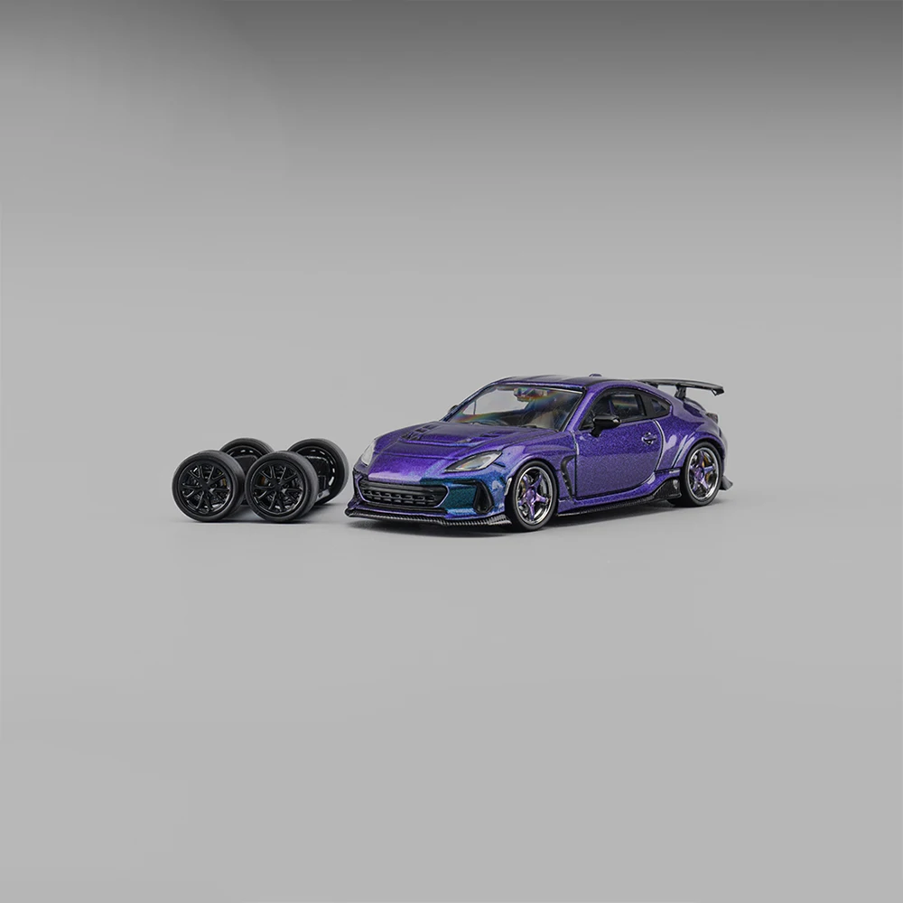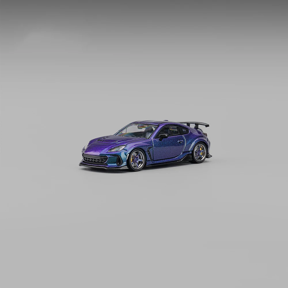 - This 1:64 scale die-cast alloy model showcases a vivid, iridescent purple color with a glossy finish, creating a stunning visual impact suitable for display and collection. The model captures the true sporty feel.