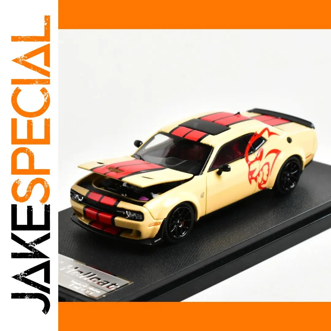 Experience the thrill of owning a meticulously crafted diecast replica of the iconic Dodge SRT Hellcat. Perfect for enthusiasts who appreciate detailed craftsmanship, this model captures the sleek, aerodynamic silhouette and vibrant racing-inspired design. The glossy body finish in shades like creamy beige or light yellow emphasizes elegance, while striking black and red racing stripes add a bold sporty flair. The open hood reveals detailed engine components, showcasing the model’s authenticity. Its fierce black multi-spoke wheels and low-profile tires exude performance readiness, complemented by a rear black spoiler and roof panel with an indentation. Whether displayed on your desk or shelf, this model offers a dynamic visual impact, making it a prized addition to any vehicle collection.