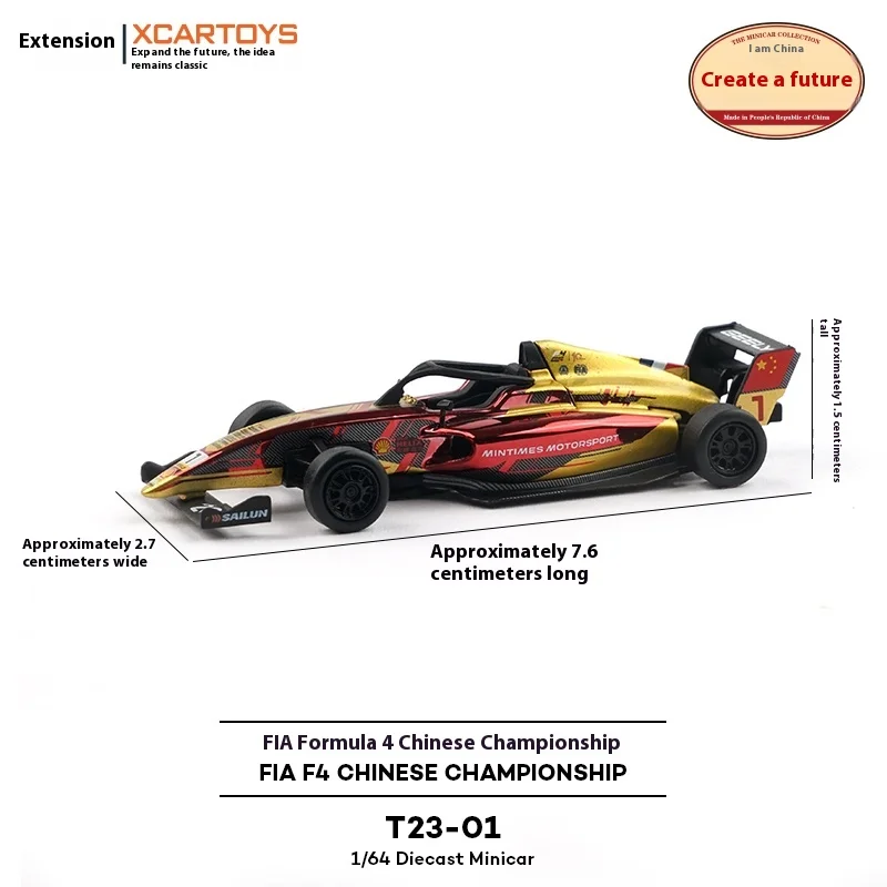 Experience the thrill of Formula racing with this highly detailed 1:64 scale diecast alloy model of the 2024 FIA Formula 4 Chinese Championship vehicle. Crafted with precision, this miniature replica captures every aerodynamic detail, from the sleek open-wheel design to the sculpted sidepods and intricate front and rear wings that mimic real race cars. Its vibrant T23-01 color scheme, combined with realistic decals and sponsor logos, makes it a standout piece for display. The glossy finish highlights the high-quality craftsmanship, giving it a polished, premium appearance. Whether you're a passionate collector or a racing enthusiast, this model is perfect to showcase your love for motorsport and add authenticity to your collection.