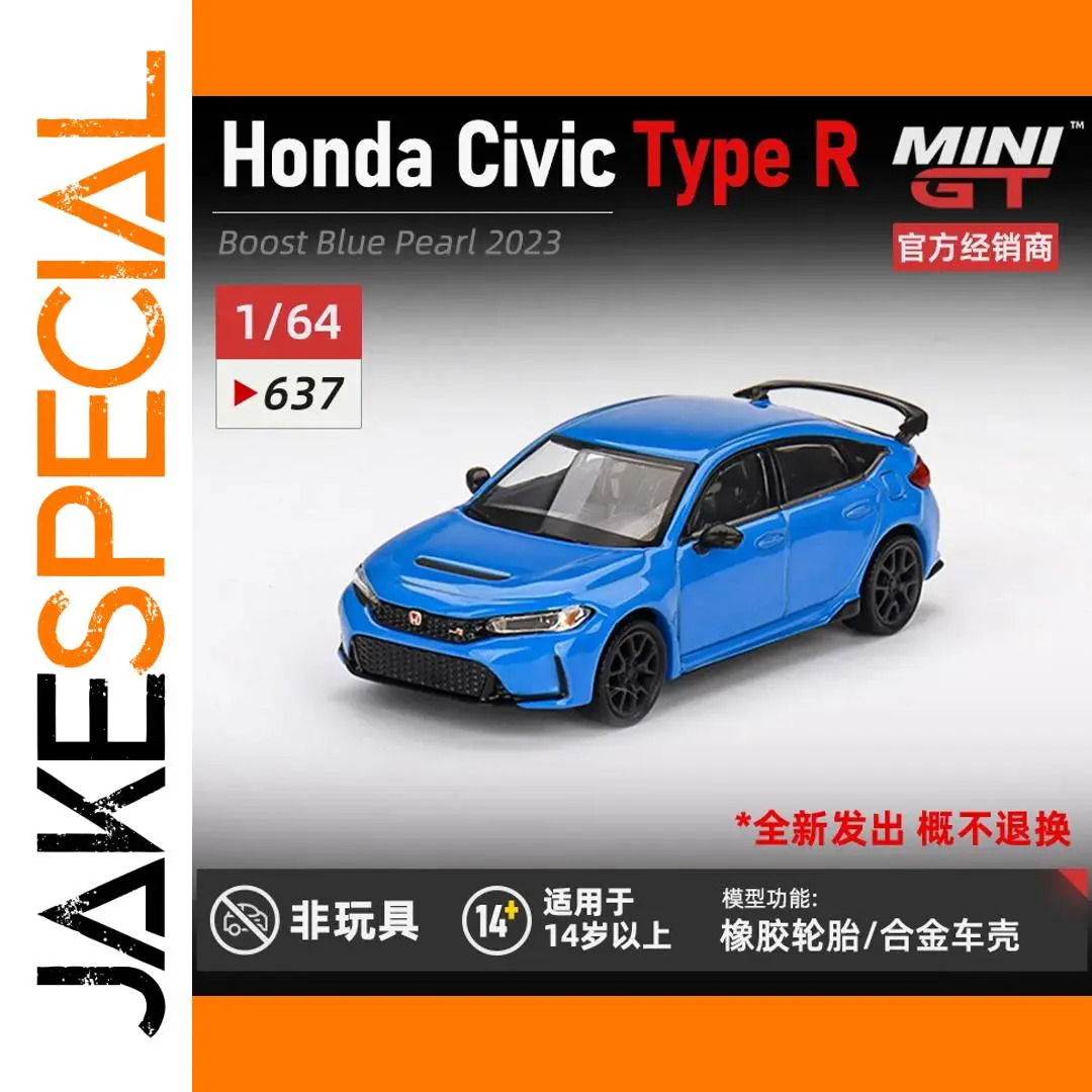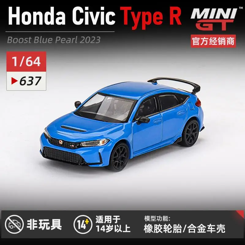 - Vivid Boost Blue Pearl color with a glossy finish makes the model stand out and captures the sporty aesthetics of the real Honda Civic Type R, ideal for both display and collection.