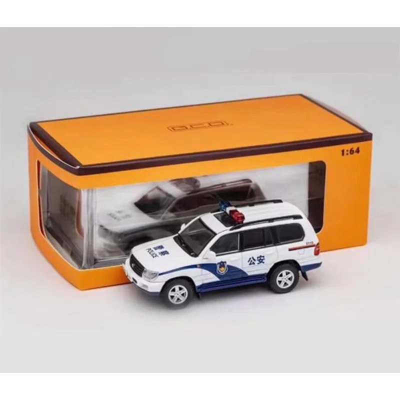 Experience the realism with this meticulously crafted 1:64 scale Land LC100 off-road vehicle model. Made from durable alloy, it exudes sophistication and authenticity, perfect for collectors or enthusiasts who want to showcase a miniature yet strikingly detailed replica. The design features a sleek white body with vibrant blue accents, complemented by black window frames and textured tires that mimic real rubber. The roof-mounted light bar with red and blue lights adds a touch of realism, making it suitable for display in a collection or as a souvenir. Its polished surfaces and authentic decals reflect highly detailed craftsmanship, creating an eye-catching piece that elevates any display or model collection.