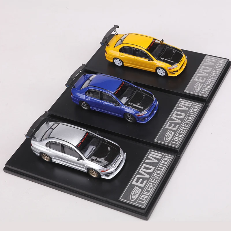 Step into the world of racing with this meticulously crafted 1:64 scale diecast model of the Mitsubishi Lancer Evolution VII. Designed for collectors and enthusiasts, this detailed replica captures the sleek, aerodynamic lines and authentic features of the rally-inspired vehicle. Available in vibrant blue with a glossy finish, metallic silver, or bold yellow with black accents, each car boasts realistic wheel rims, transparent windows revealing interior details, and finely rendered elements like spoilers, grilles, and door handles. Its durable metal construction ensures a high-quality display piece that truly embodies speed and precision. Whether you're adding to your collection or showcasing on a display shelf, this model embodies realism and craftsmanship for great visual impact.