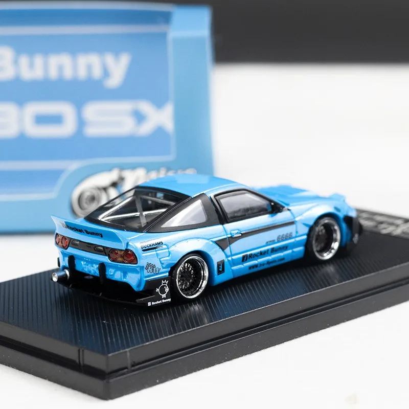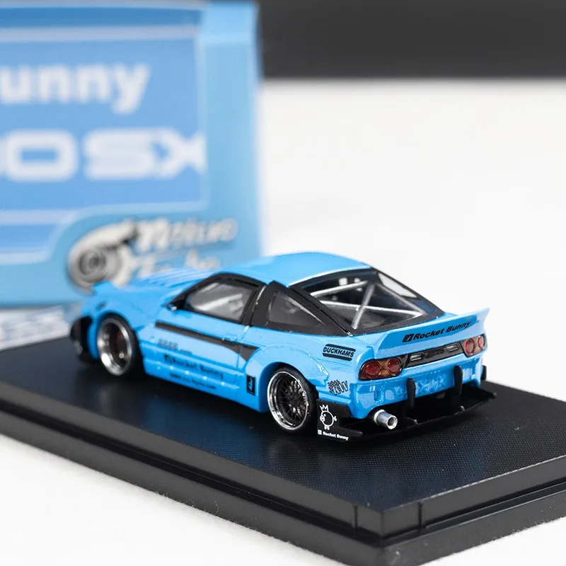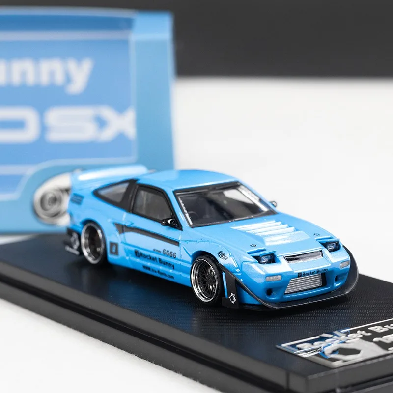 Experience the thrill of owning this highly detailed miniature of the iconic Nissan 180SX. Crafted with precision from alloy and ABS plastic, this collectible captures every curve and detail of the original car, making it perfect for display or decoration. The model measures approximately 7 cm in length and features a vibrant, glossy sky blue finish with a sleek black stripe running along the side. Its outstanding details include integrated headlights, aerodynamic vents on the hood, and a prominent rear wing spoiler that emphasizes its sporty, racing-inspired look. Small decals like “6666” and “Rocket Bunny” add a touch of customization. This collectible offers a high-quality finish, realistic wheels with silver rims, and fine body lines, ideal for enthusiasts and collectors alike.