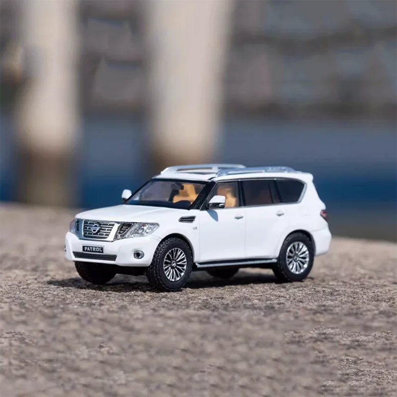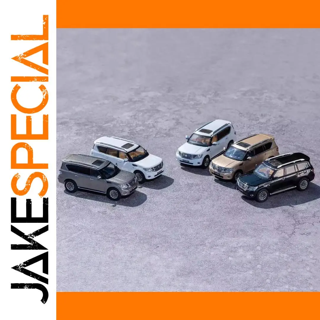 - Designed at a 1:64 scale, it features precise dimensions suitable for display and collection, with textured surfaces that mimic the premium appearance of a full-sized Nissan Tule Y62 SUV.