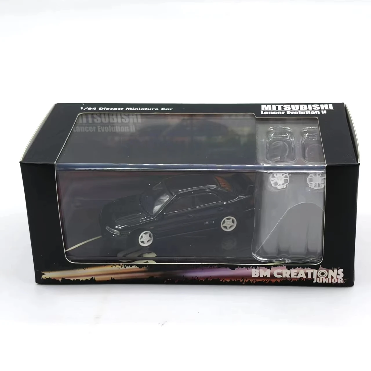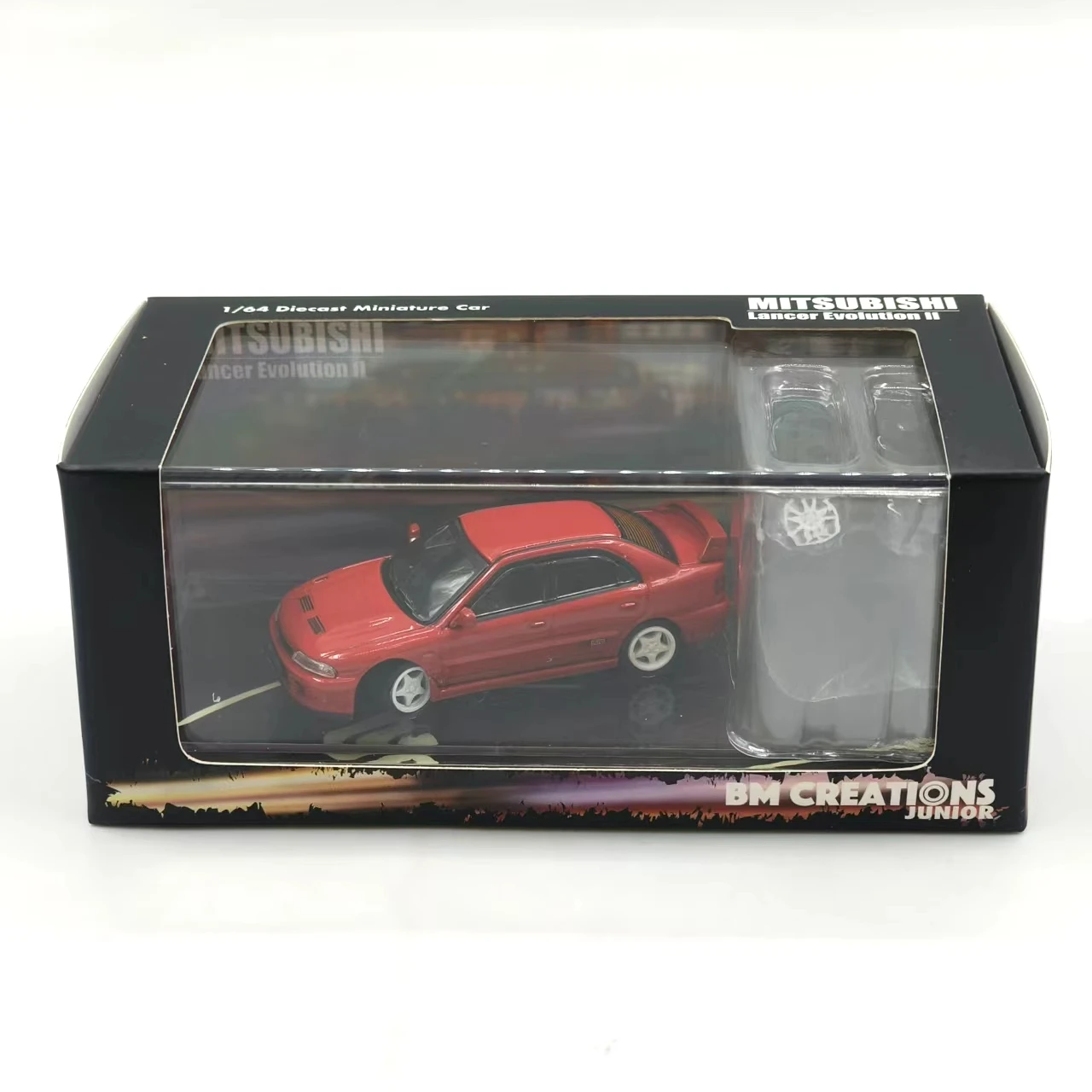 This 1:64 scale diecast model of the Lancer Evolution EVO II in eye-catching red is a must-have for any car enthusiast. The glossy finish beautifully enhances its sleek lines and sporty design, making it perfect for both display and play. Measuring approximately 7 cm in length, this durable model is constructed from a combination of alloy and plastic, providing a solid feel while maintaining lightweight maneuverability. With intricate details including a prominent front grille and aerodynamic body shape, this model is ready to enhance your collection or serve as an engaging toy for older collectors.