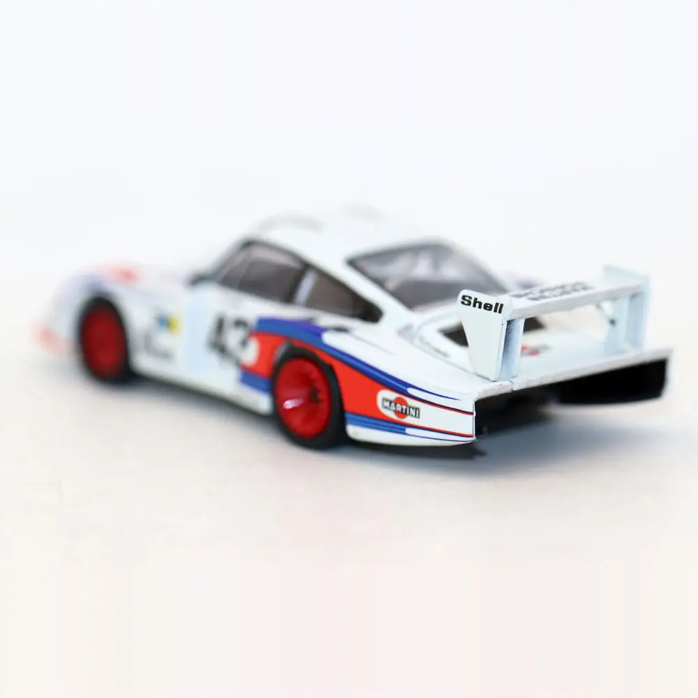 Immerse yourself in the world of motorsport with this stunning 1:64 scale diecast model of the iconic 1978 race car, Moby Dick. Finished in an eye-catching bright orange color, this miniature car captures the essence of speed and performance. Its sleek aerodynamic design, adorned with sponsor decals and distinct racing numbers, is sure to be a conversation starter among collectors and enthusiasts alike. Whether displaying it on your shelf or adding it to a mini racing track, this model combines stellar craftsmanship with a nod to racing history, providing a perfect addition to your collection or a gift for a fellow racing fan.