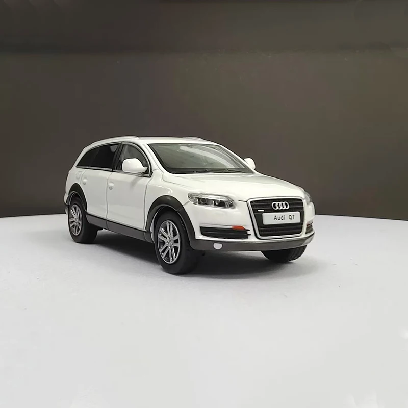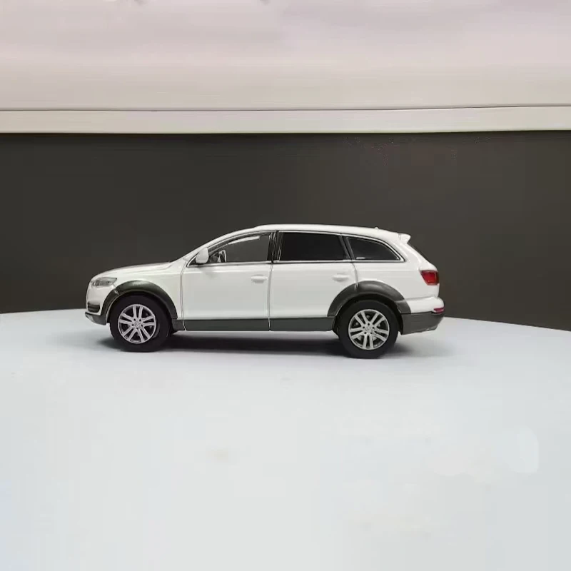 Experience the elegance and precision of this highly detailed diecast alloy model of the 2008 Q7 FSi Quattro, perfectly crafted for collectors who appreciate luxury vehicles. Featuring a sleek, glossy black or white finish, each model showcases realistic contours and intricate design elements such as a detailed front grille, headlights, side mirrors, door handles, and roof rails. The alloy construction enhances durability and authenticity, making it an impressive display piece. With matching multi-spoke alloy wheels and transparent windows, this model exudes a refined, upscale look. It’s a superb addition to any collection or decorative setup, emphasizing quality craftsmanship and attention to detail in every aspect. Elevate your display with this miniature representation of luxury.