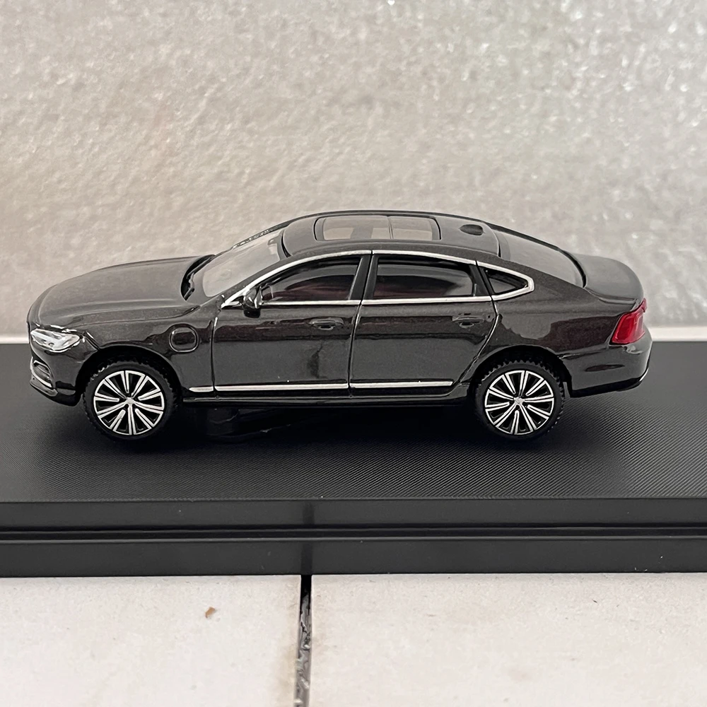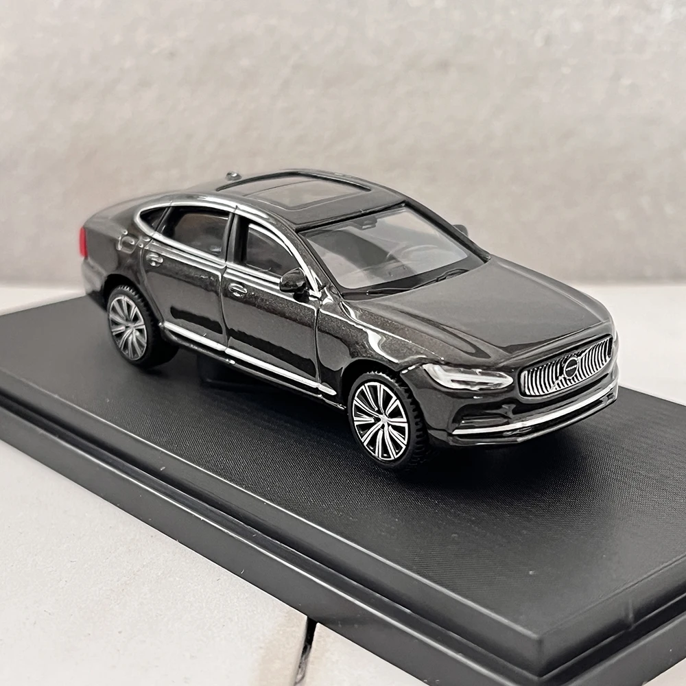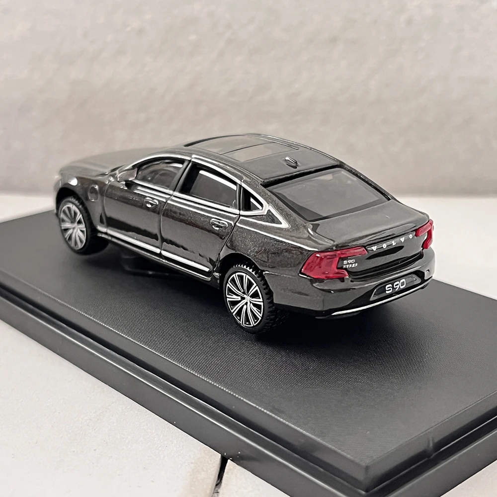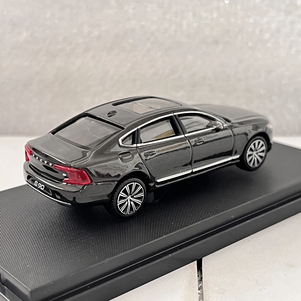Experience the sleek elegance of this miniature S90 or V90 alloy car model, meticulously crafted to reflect the modern, streamlined silhouette of the original vehicle. Finished in a high-gloss metallic black or dark gray, it boasts detailed front grille with vertical slats, sharp angular headlights, and silver accents around the windows and lower sides. The model's precise multi-spoke rims and rotatable wheels add a touch of realism, making it an eye-catching display piece. Perfect for collection, gifting, or static decor, this 1:64 scale replica captures the upscale aesthetic and intricate details that true enthusiasts appreciate. Its polished surface and thoughtful design make it a standout addition to any miniature car collection or showcase.