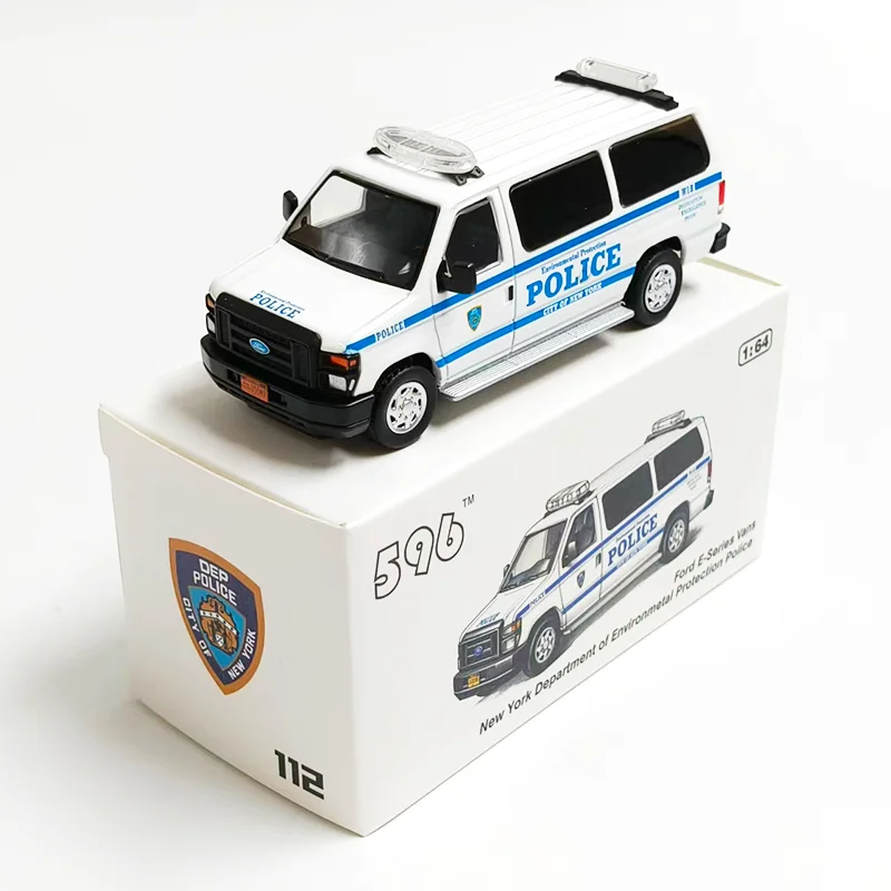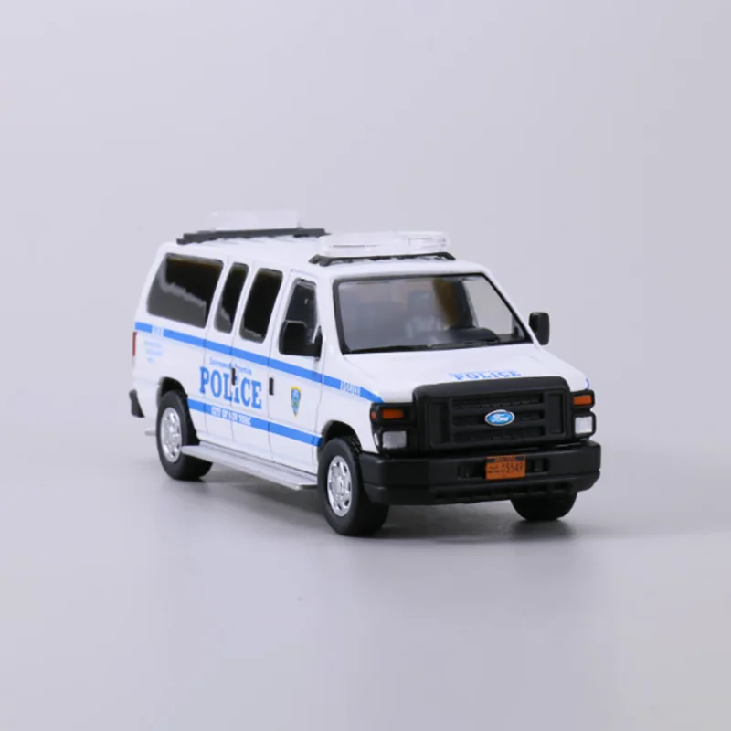 Enhance your collection with this highly detailed 1:64 scale alloy diecast E350 police van model, featuring a sleek white body with blue and light blue decals, “POLICE” lettering, and horizontal stripes along the sides. Equipped with a white roof-mounted light bar and auxiliary light, black-tinted windows, black side mirrors, and white multi-spoke rims on black tires, this static display piece exudes realism and authority. Made from alloy, it offers a sturdy, metallic finish perfect for collectors and enthusiasts aged 14 and above. Ideal for decoration or showcasing, this model captures the authentic look of a police vehicle with precise detailing and a professional aesthetic.