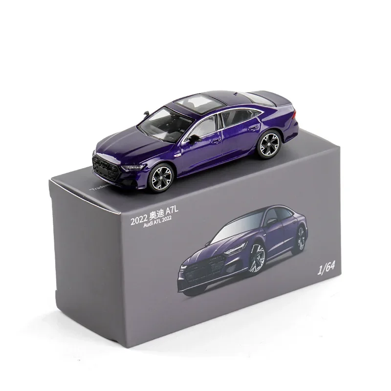 This exquisite 1:64 scale diecast model of the Audi A7 2022 is a true collector's gem. Adorned in a deep purple hue with a glossy finish, it radiates elegance and sophistication. Every nuanced detail, from the sleek front grille to the modern headlights, captures the essence of the actual vehicle. The model, with its black alloy wheels and smooth design, invites admiration. Measuring approximately 7.8 cm in length, it is crafted from durable alloy and plastic, ensuring it stands the test of time. Whether displayed on your shelf or gifted to a fellow enthusiast, this piece is sure to inspire awe and spark conversation.