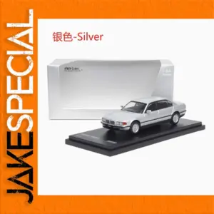 This stunning 1:64 scale diecast model of the BMW 750iL E38 is crafted from high-quality alloys and plastics, showcasing a sleek, metallic silver finish that beautifully reflects light. The intricate detailing—clear windows, a finely designed front grille, headlights, and alloy wheels—make it a true collector’s item. Perfectly mounted on a stable black base for contrast and elegance, this model is encased in a transparent display case that protects while allowing for visibility. Designed exclusively for adult collectors, this model perfectly embodies automotive craftsmanship and style, enhancing your collection or serving as an exquisite gift.