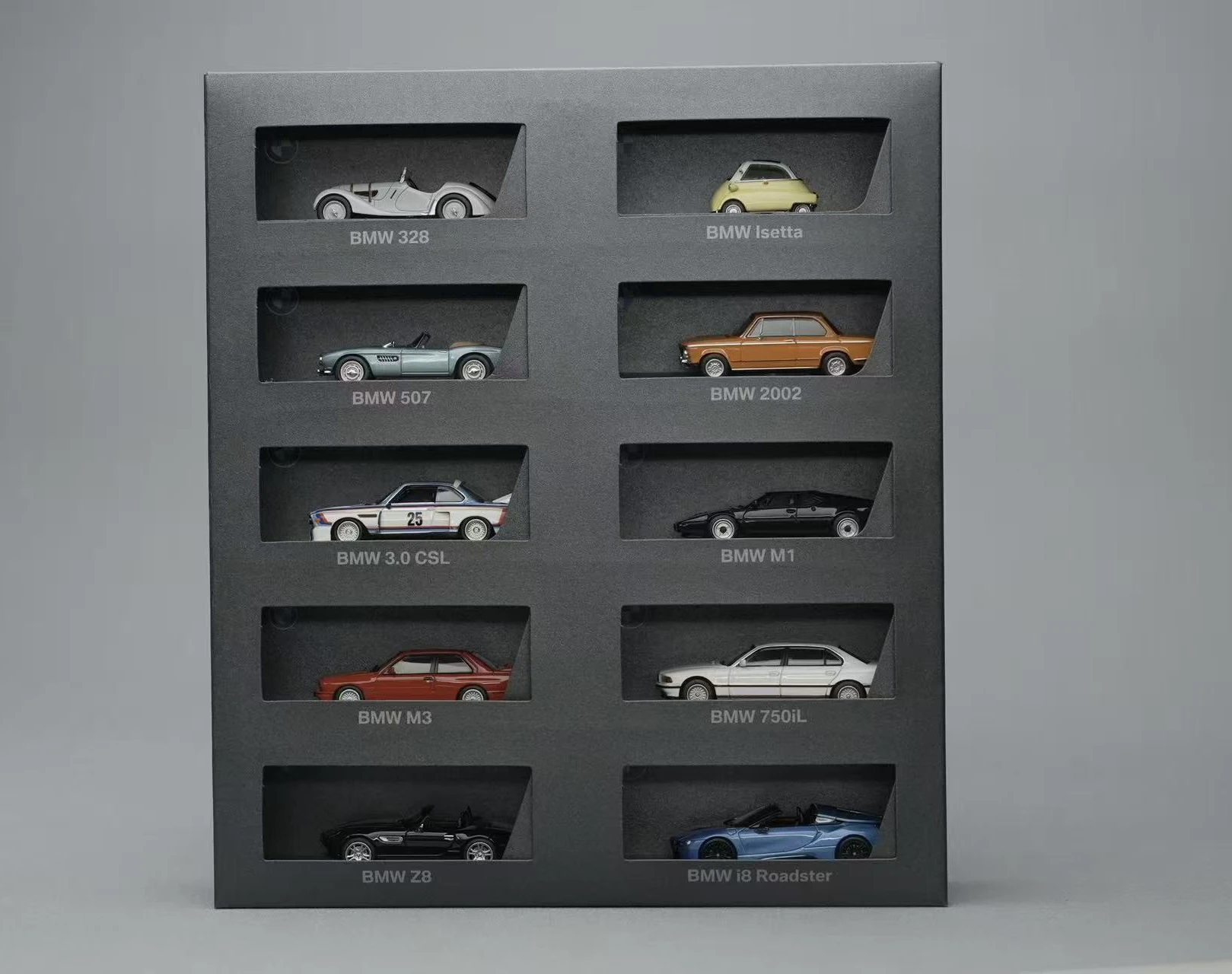 - Stunning assortment of ten unique BMW models, each with distinct colors.
