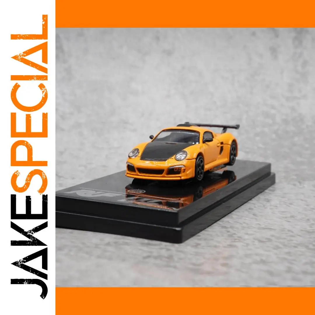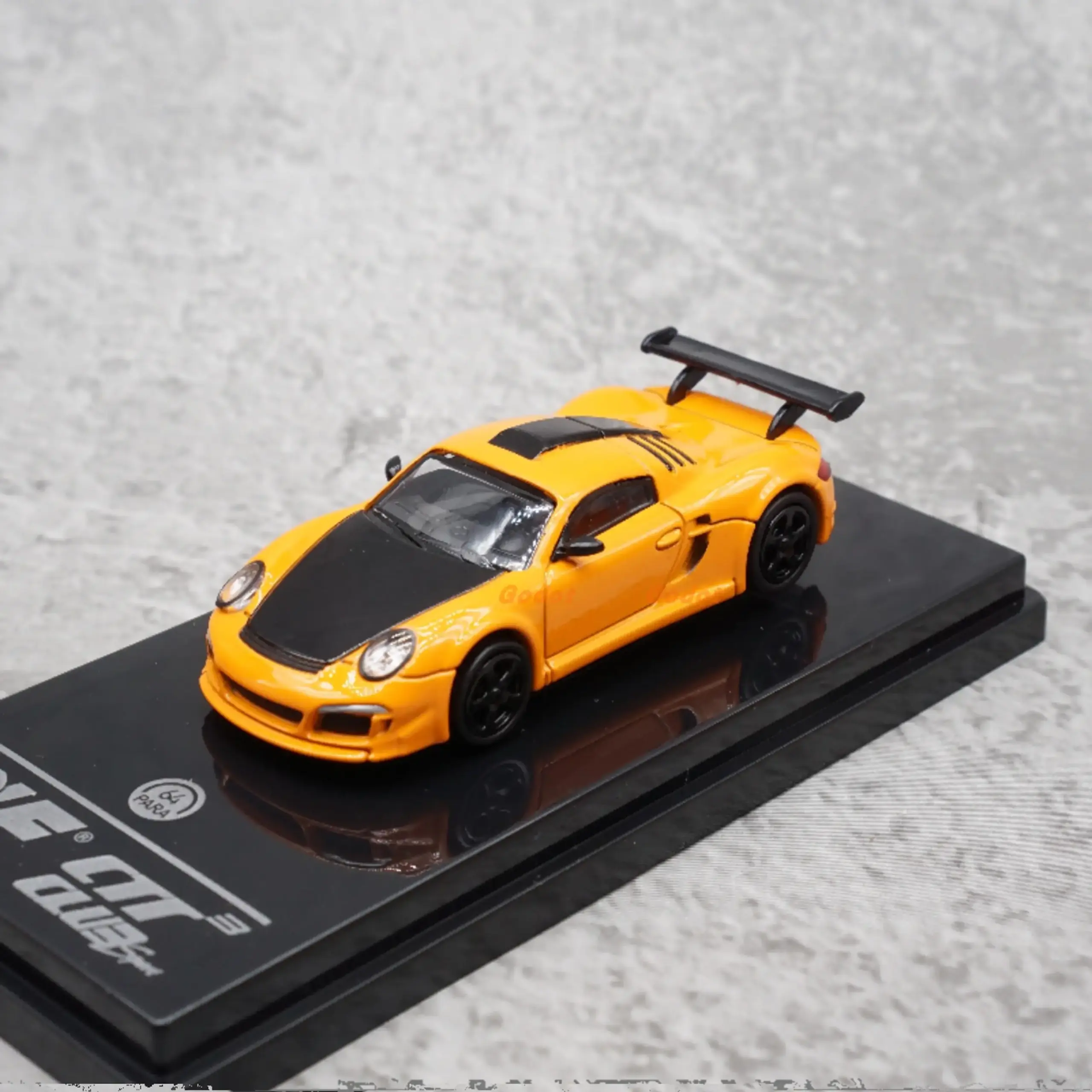 This exquisite 1:64 scale diecast model of the 911 RUF CTR3 Clubsport from 2012 will capture your heart and elevate your collection. Dressed in an eye-catching bright orange hue with a glossy finish, the model features a contrasting black hood and meticulously crafted aerodynamic details. From the sculpted bumper and headlights to the impressive rear wing, this model embodies the aggressive spirit of a racing legend. Displayed elegantly on a sophisticated glossy black base, it’s both a visual delight and a showcase of automotive artistry. Made from durable alloy and plastic, this lightweight model is perfect for handling and admiring from every angle.