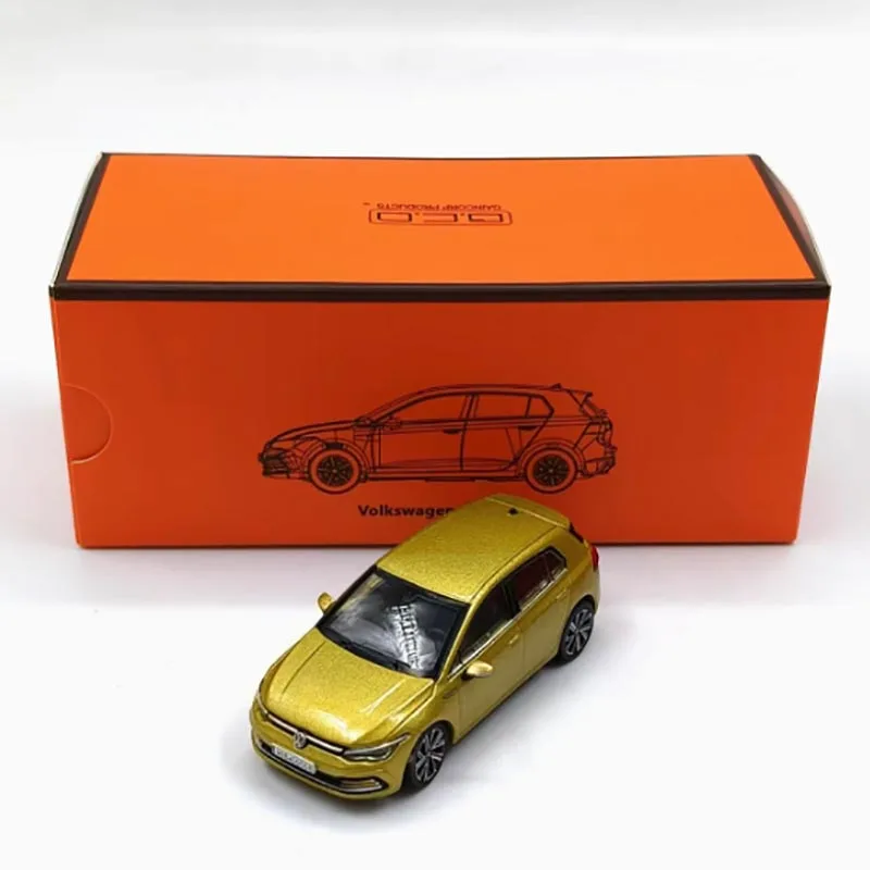 - This 1:64 scale replica showcases the iconic Golf GTI with accurate design, vibrant metallic yellow, white, and red finishes, and impressive exterior details, including grille, headlights, and side mirrors.