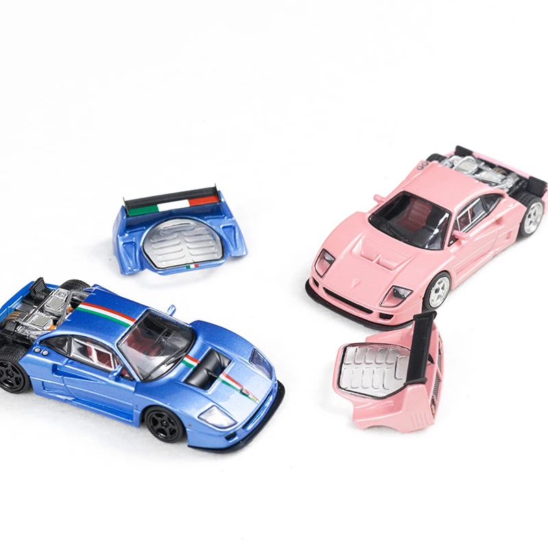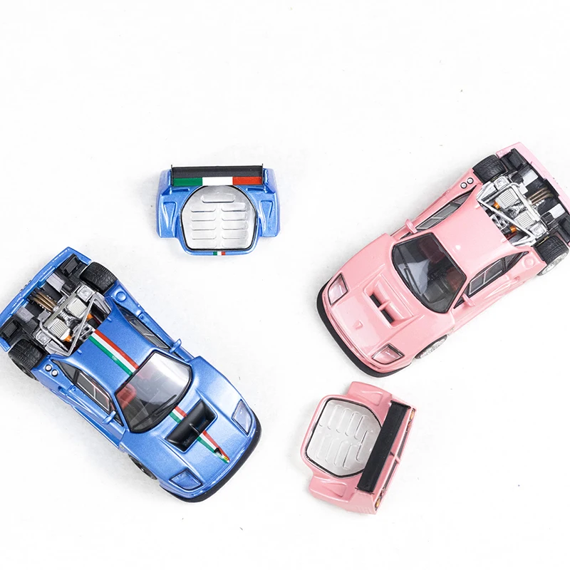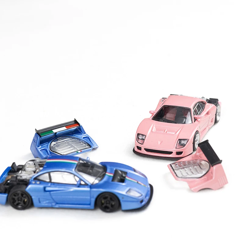 This 1:64 scale diecast model car is designed for the discerning collector. Its eye-catching aesthetics include a sleek blue car with racing accents and a sporty tri-color stripe, alongside a vibrant pink car that features intricate detailing visible through its removable rear cover. Crafted from durable metal, these models appeal to enthusiasts aged 14 and older. With detailed wheels and smooth finishes, they serve both as stunning display pieces and engaging play items. The glossy removable rear covers add to their unique charm, ensuring these models are a perfect addition to any collection or display.