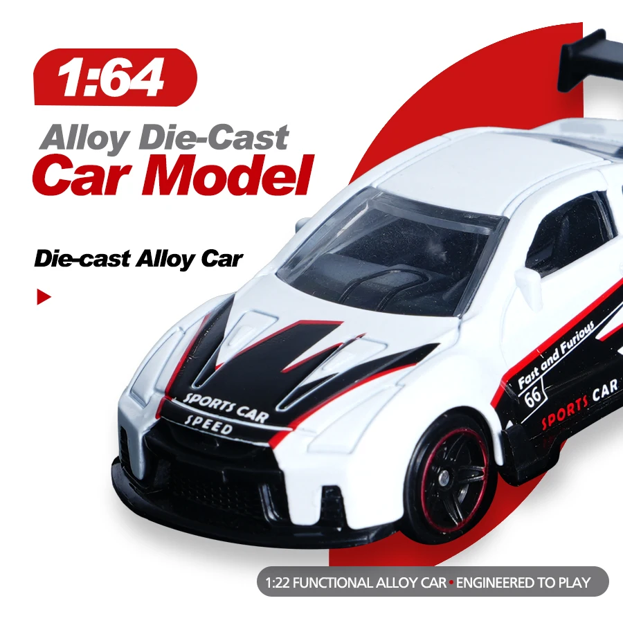 Immerse yourself in the world of high-speed racing with this beautifully crafted 1:64 scale diecast model. Featuring a striking red and white alloy construction, the car boasts exquisite interior details that elevate its realism. Its aerodynamic design, complemented by bold black accents on the grille, hood, and sides, captures the essence of a true racing machine. Dynamic red highlights along the shoulder lines and wheel rims add vibrancy and energy to the model. Perfect for display, collection, or as a thoughtful gift, this detailed replica brings speed and style into your space, allowing you to enjoy the thrill of the race whenever you admire its stunning craftsmanship.
