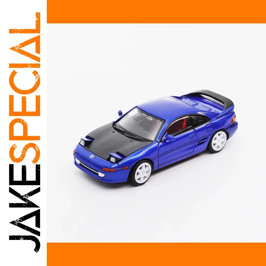 Imagine adding a sleek and vibrant Toyota MR2 diecast model to your collection, perfectly capturing its sporty essence. This highly detailed 1:64 scale alloy model boasts a vivid metallic blue finish, complemented by a textured black carbon fiber-style hood that highlights its high-performance look. The smooth, streamlined contours are accentuated by subtle panel lines and molded door handles, enhancing realism. With its white five-spoke wheels and detailed taillights, this model exudes a dynamic and modern aesthetic. Ideal for display, it allows you to showcase the sporty elegance of the MR2 in a compact form. Perfect for enthusiasts who appreciate intricate design and craftsmanship in a collectible model.