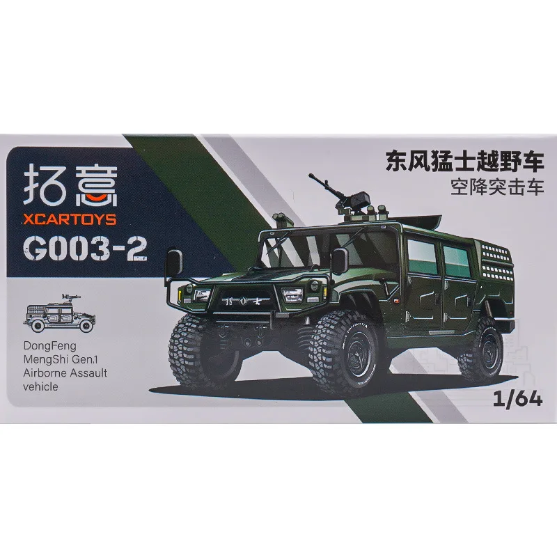 Immerse yourself in realistic military vehicle collection with this meticulously crafted 1:64 scale diecast model of the Dongfeng Manshi off-road vehicle. Made from durable metal alloy, the model boasts a rugged matte military green finish with a robust, boxy silhouette designed for authenticity. Features include a detailed black grille, integrated headlights, transparent windshield and side windows, deep-tread off-road tires on black wheels, a flatbed cargo area, a rear door with a mounted spare tire, and finely featured side mirrors and panel lines. Perfect for display or collection, this non-electric replica is intended for adult enthusiasts aged 18 and above, emphasizing durability, craftsmanship, and true-to-life aesthetic details.