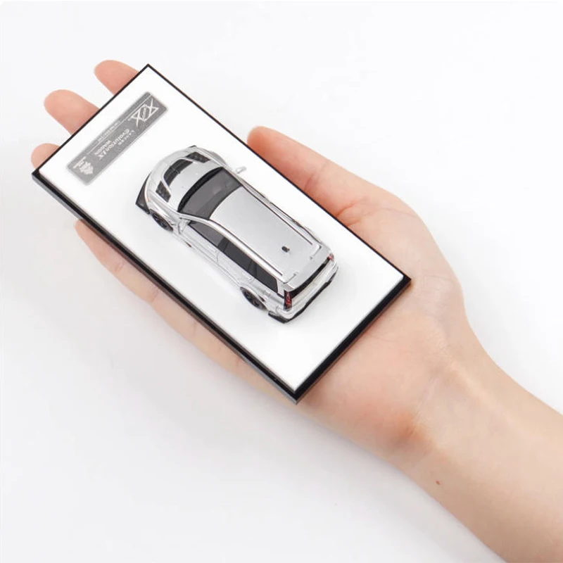 The 1:64 Scale Lancer EVO9 9th Generation Modified Station Wagon model from WELLY is a stunning collectible made entirely from resin, featuring a realistic silver glossy finish. This detailed model showcases intricate elements such as a sporty body kit, rear spoilers, and uniquely styled wheels with a black finish and gold accents. Perfect for display or decoration, it emphasizes a sleek, contemporary aesthetic. The item is fragile and not intended as a toy, requiring careful handling and potential glue for assembly if parts detach. Available in options labeled A, B, and C, this model is essential for enthusiasts and collectors alike.