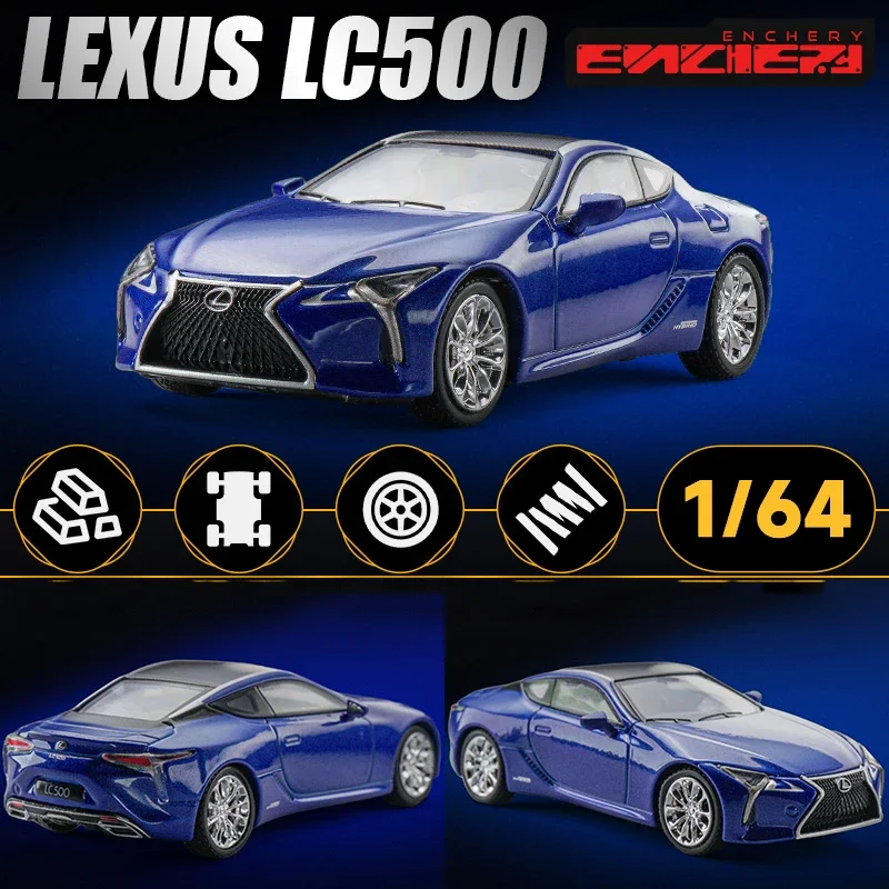 - This 1:64 scale model measures around 7 cm in length, offering a compact but detailed replica of the Lexus LC500 with vibrant, realistic exterior colors including red, black, white, gray, and blue.